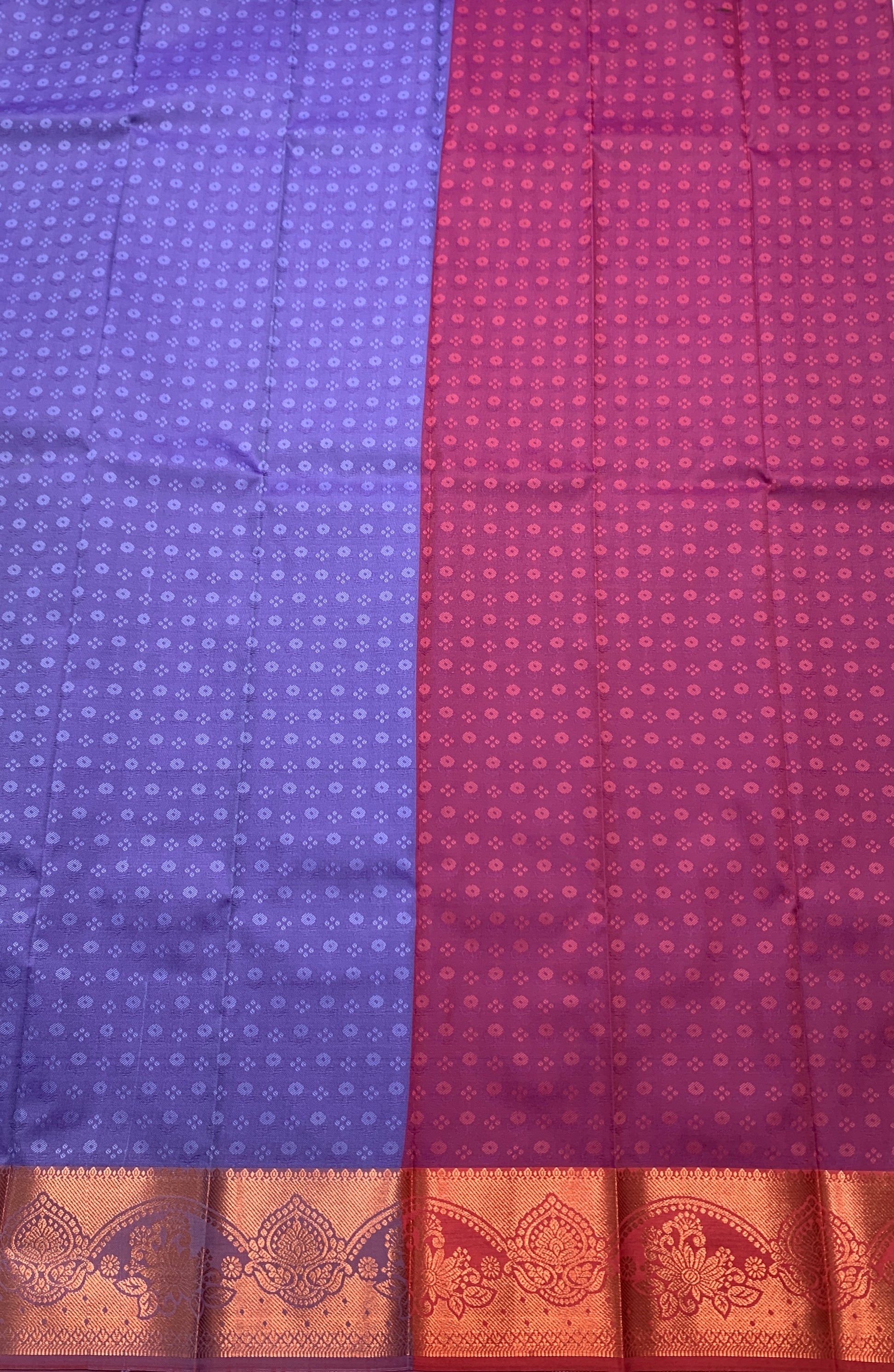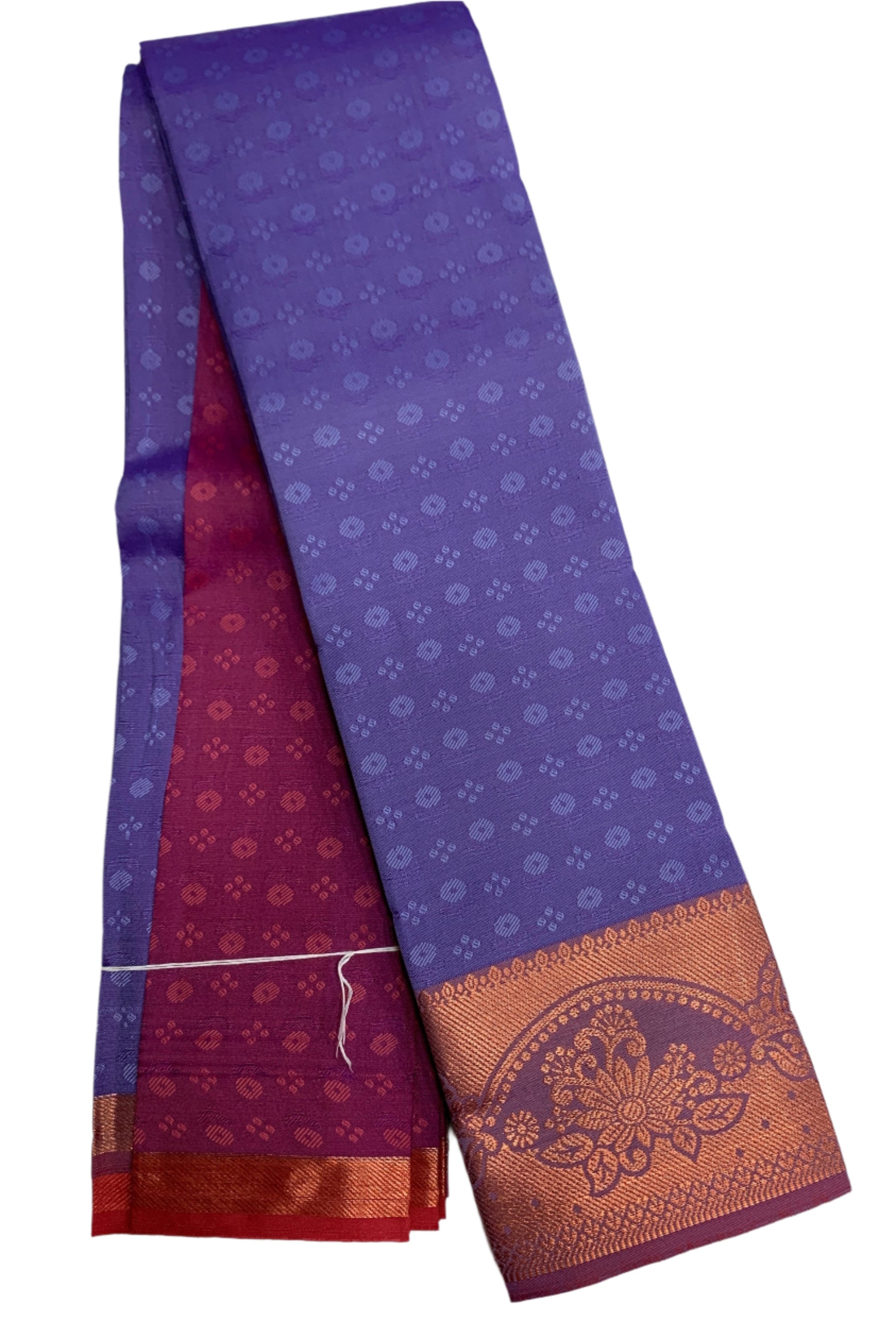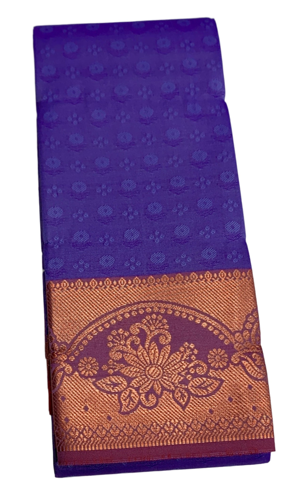 Synthetic Cotton Saree Lavender Shade with Copper Border with Floral Design.