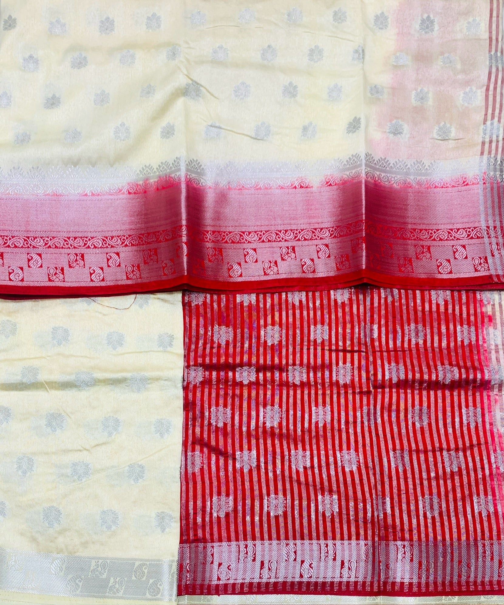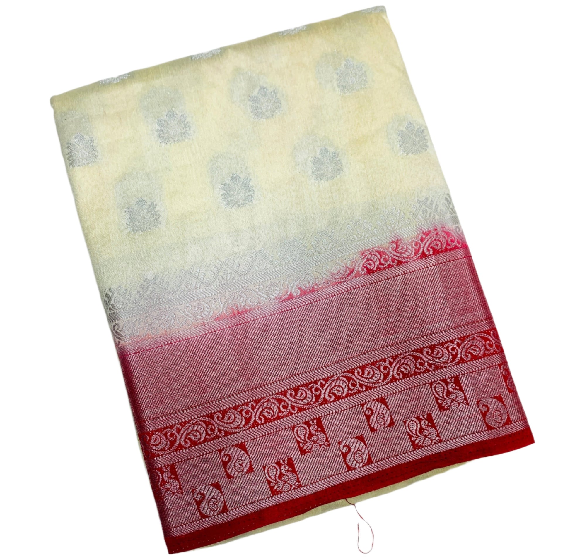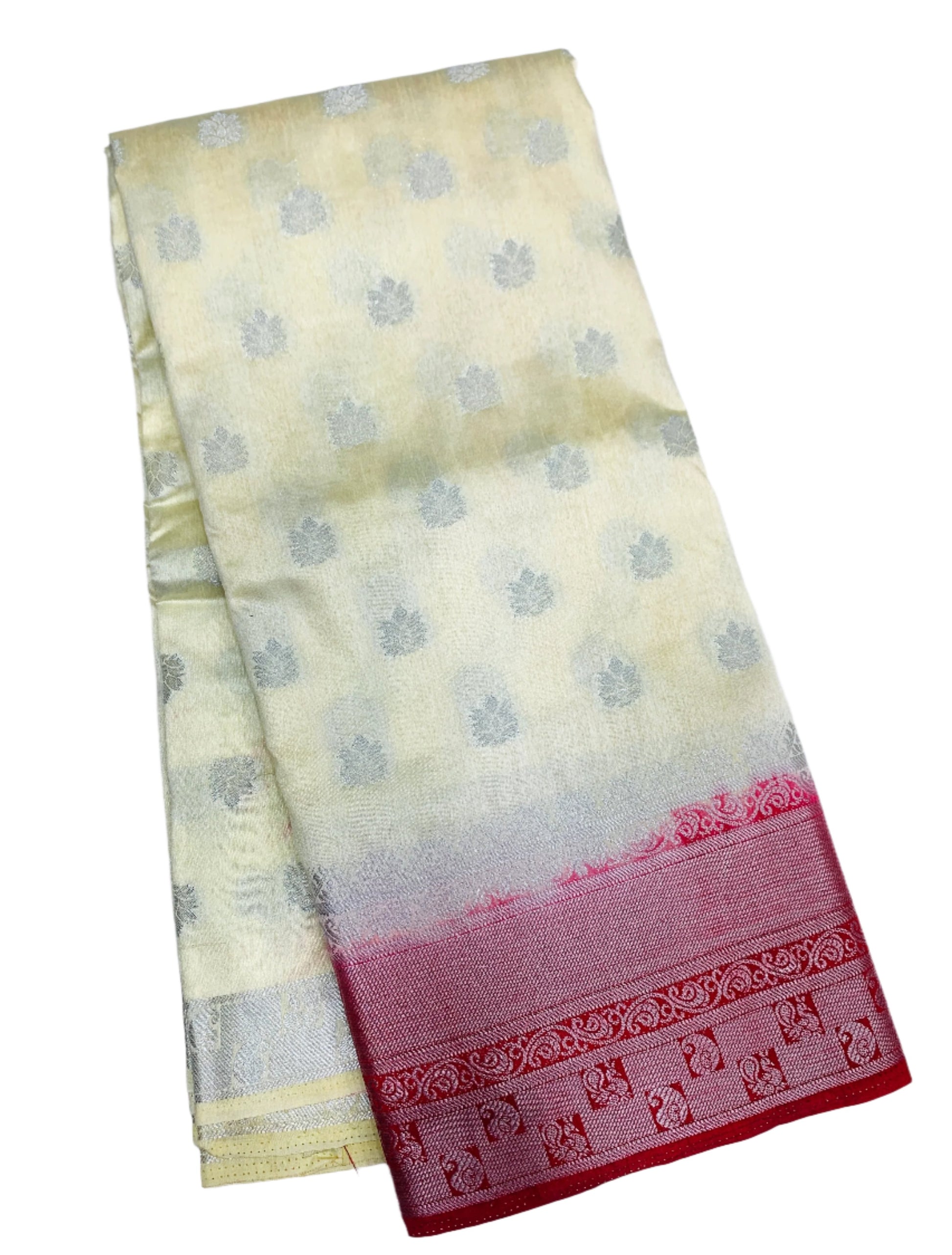 Tussar Saree Off White Colour with Red Border.Light weight and easy to drape.