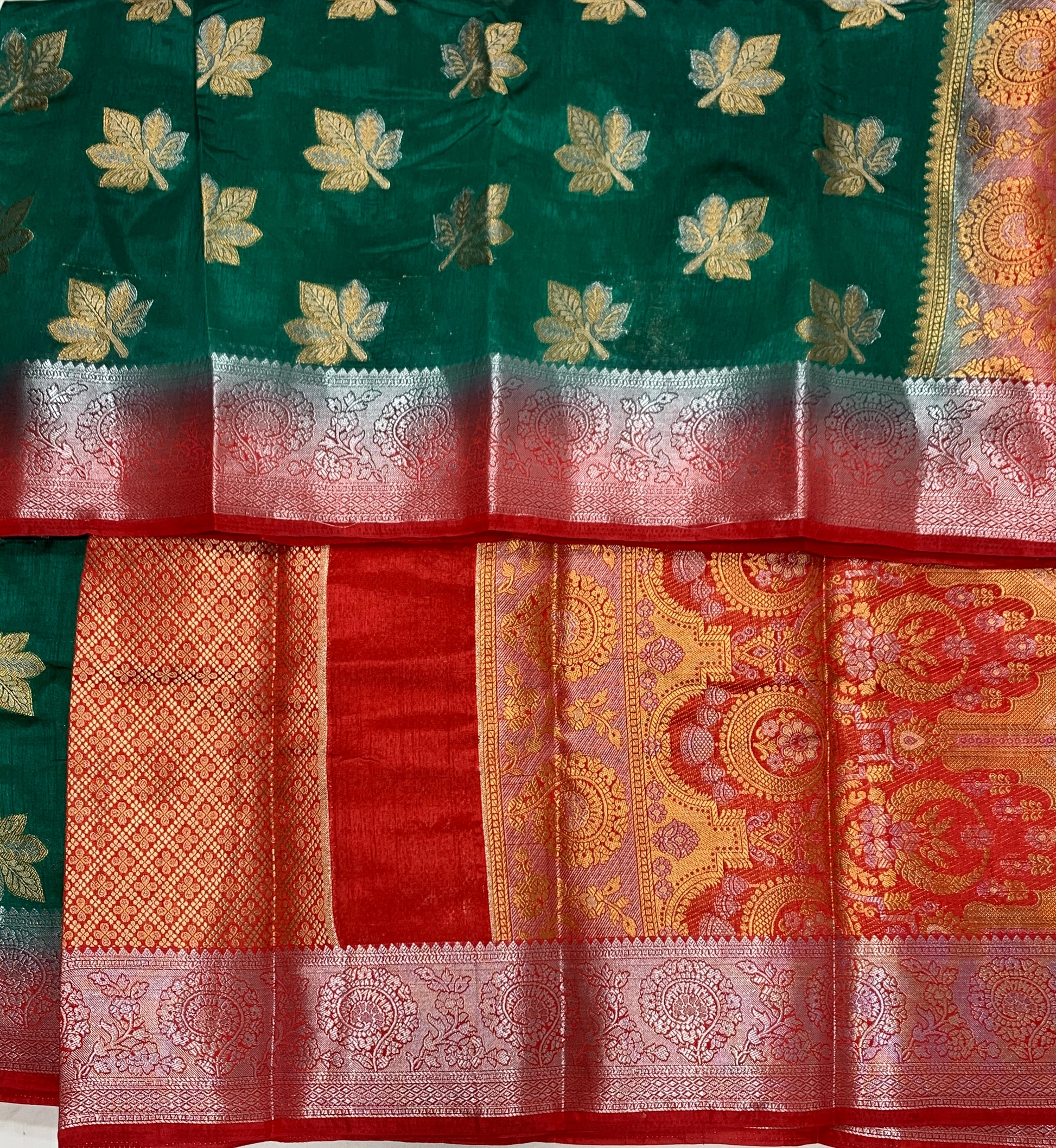Tussar Saree Green Colour with Red Border