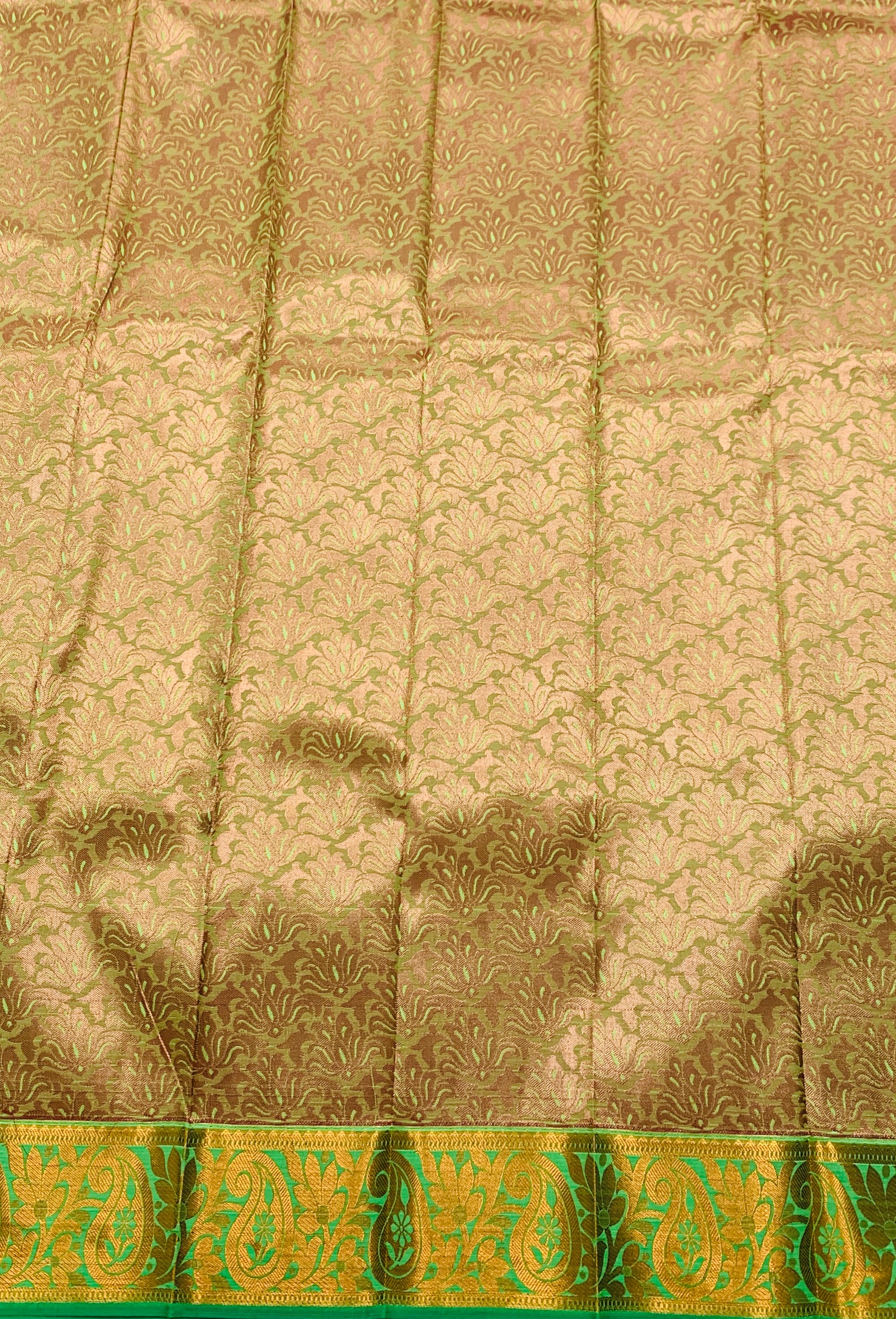 Vegan Silk Saree Apple Green Shade with Copper Border.