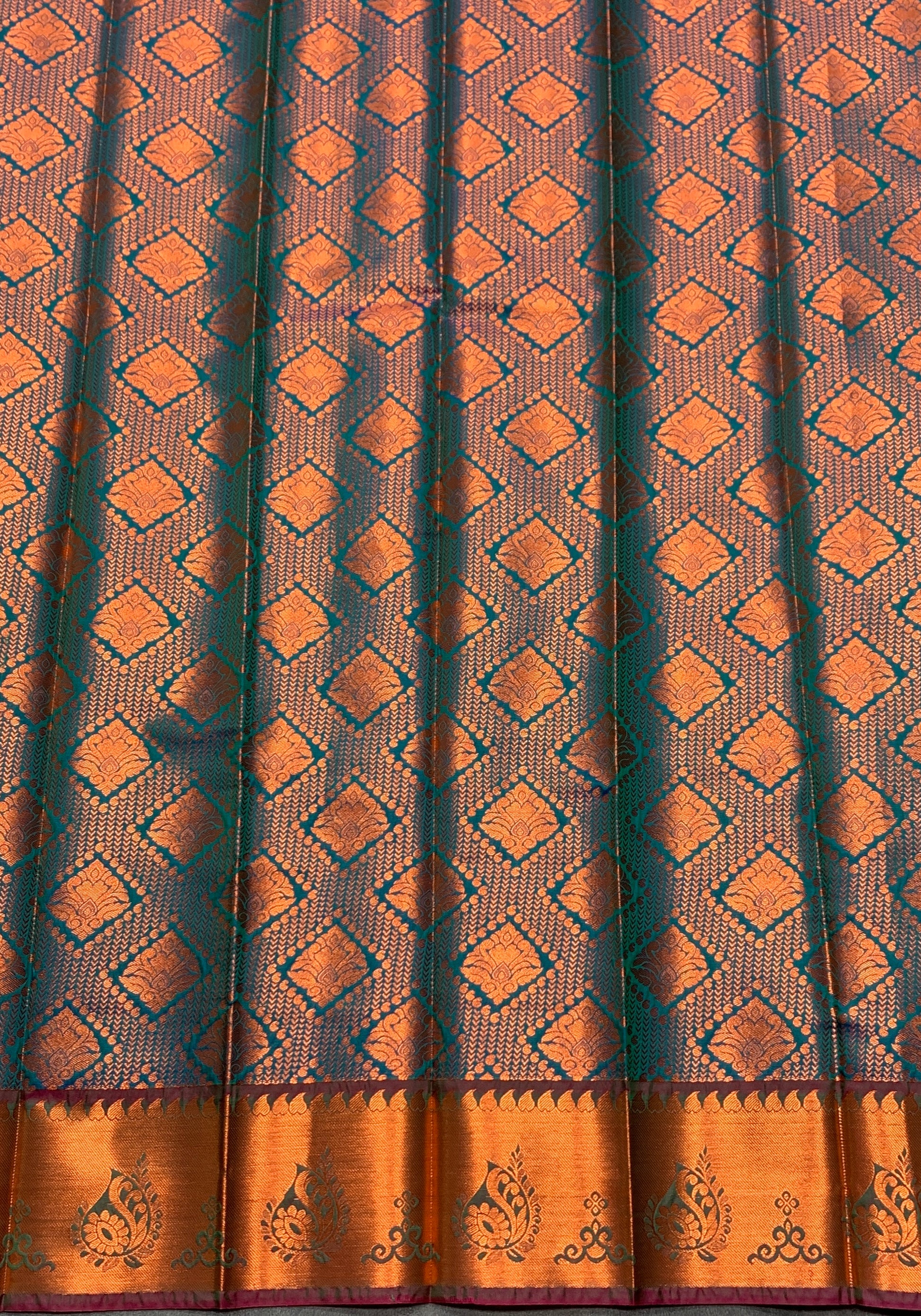 Vegan Silk Saree Aqua Blue Colour with Pink and Copper Border