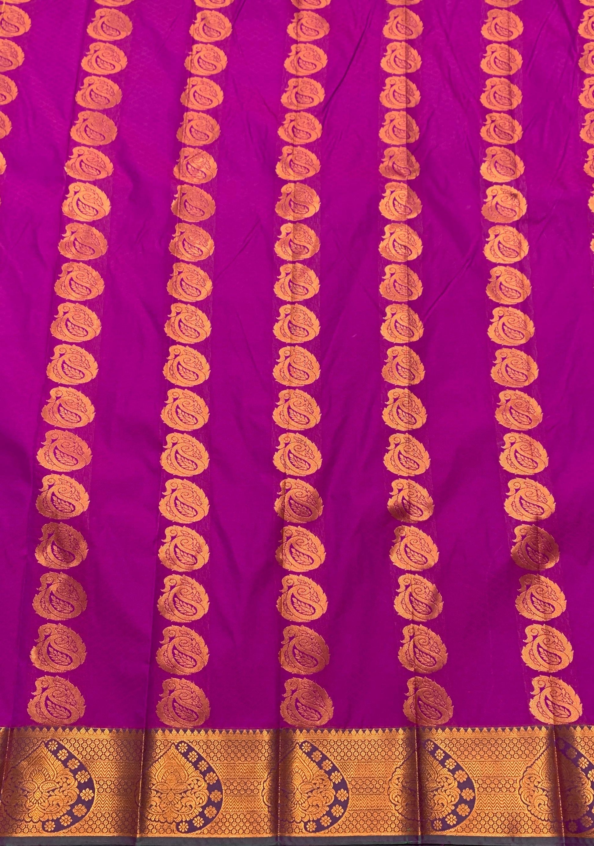 Vegan Silk Saree Vadamali Colour with Mango design. Copper Border with Flower design.
