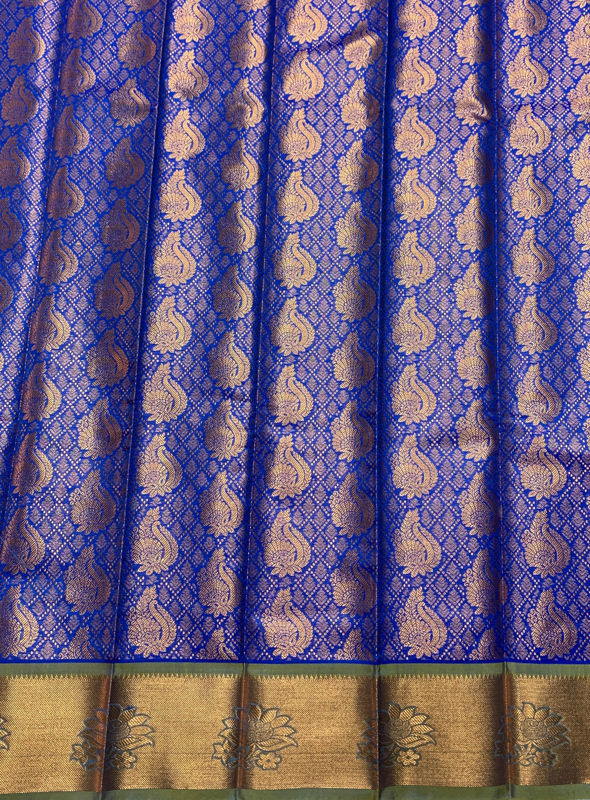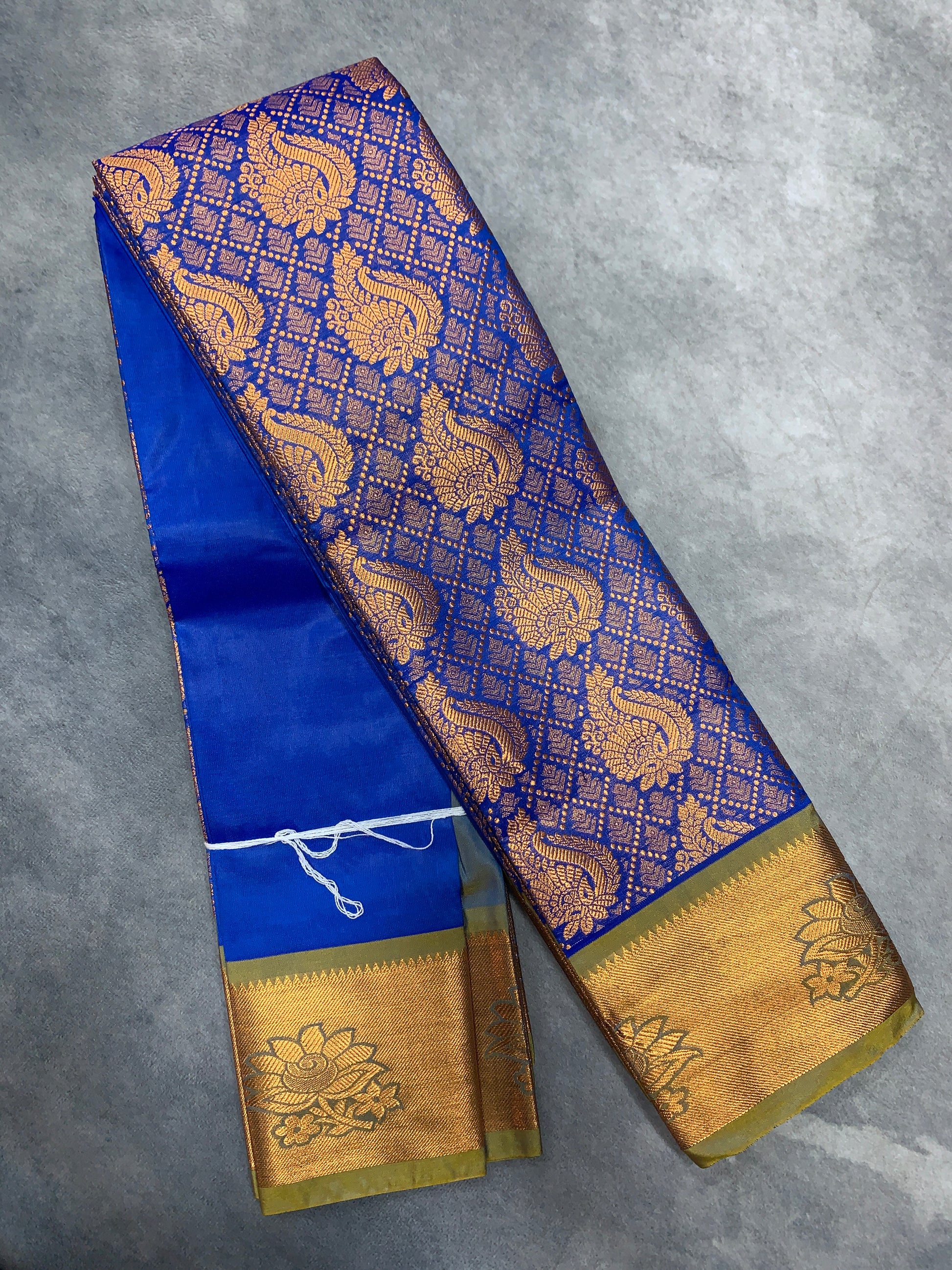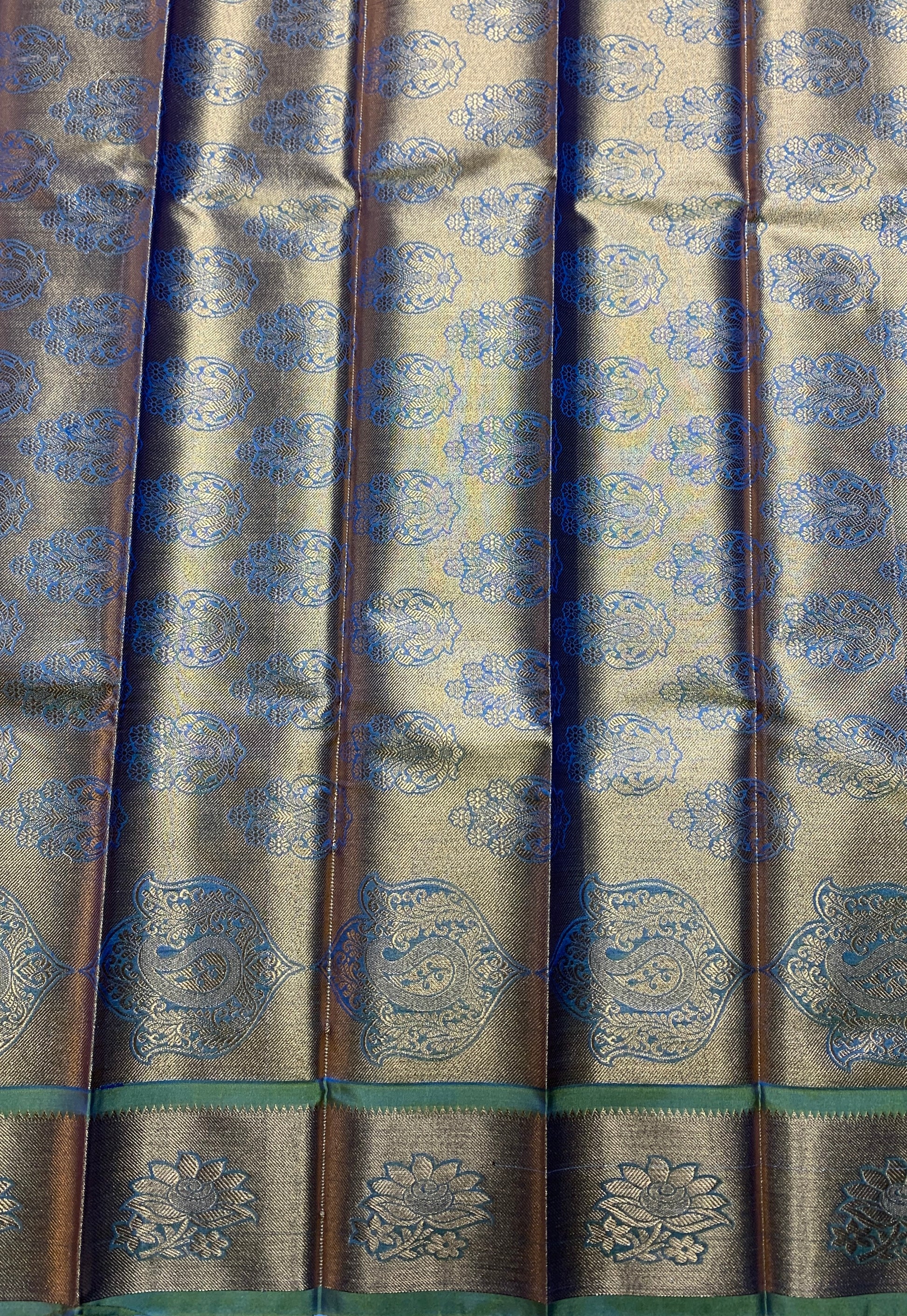 Vegan Silk Saree Blue Colour with Copper and Light Green Border