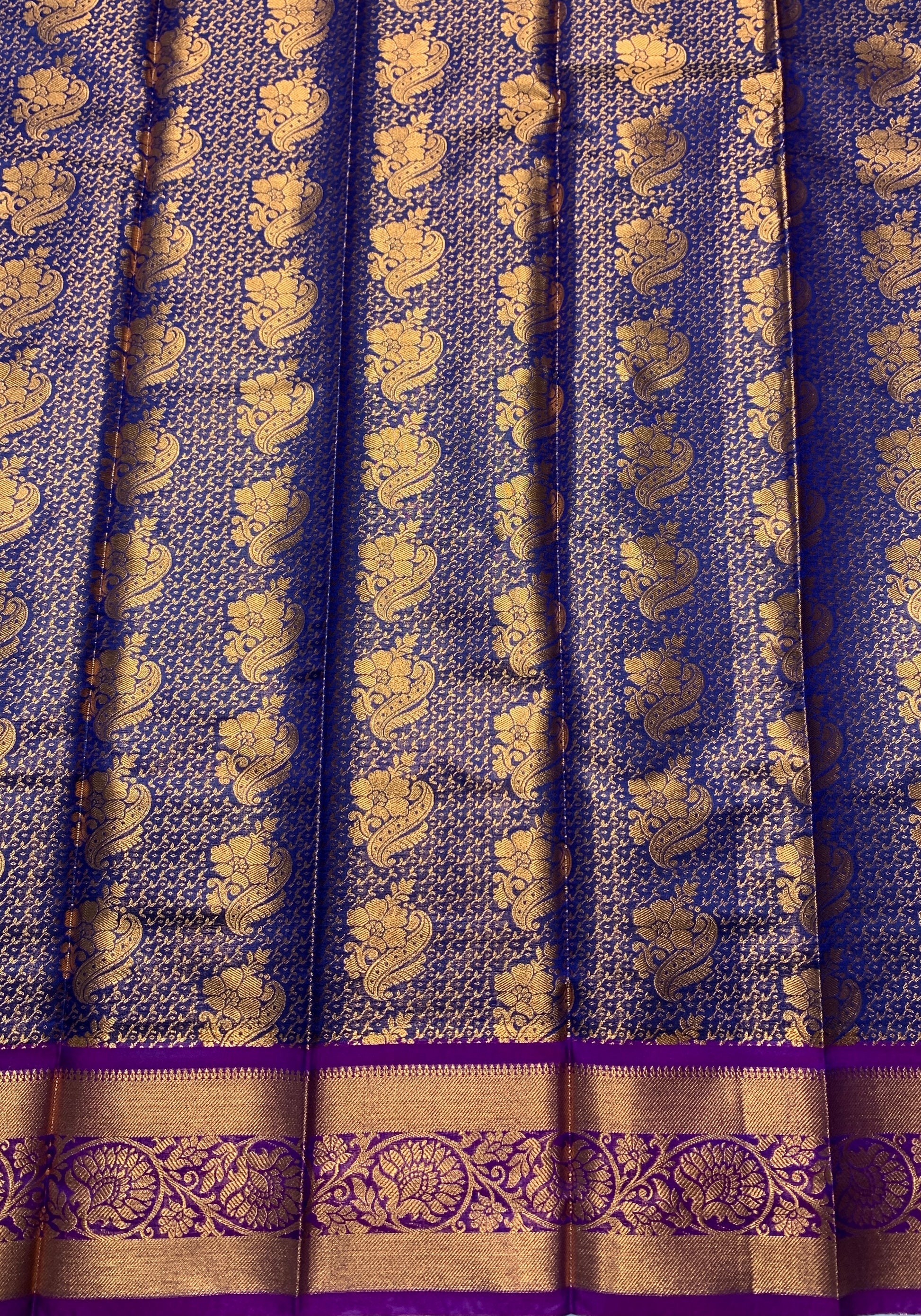 Vegan Silk Saree Blue Colour with Copper and Magenta Border