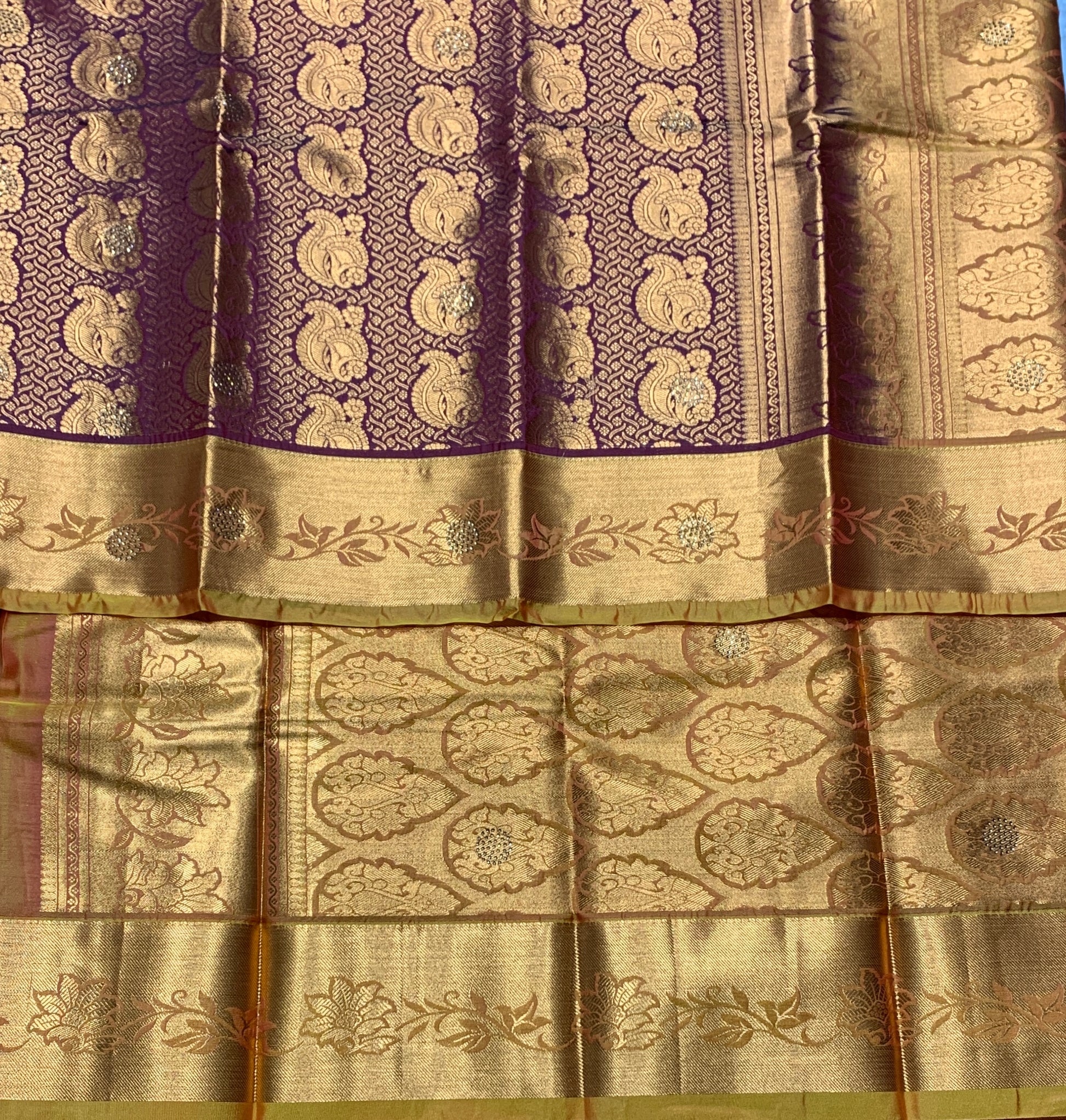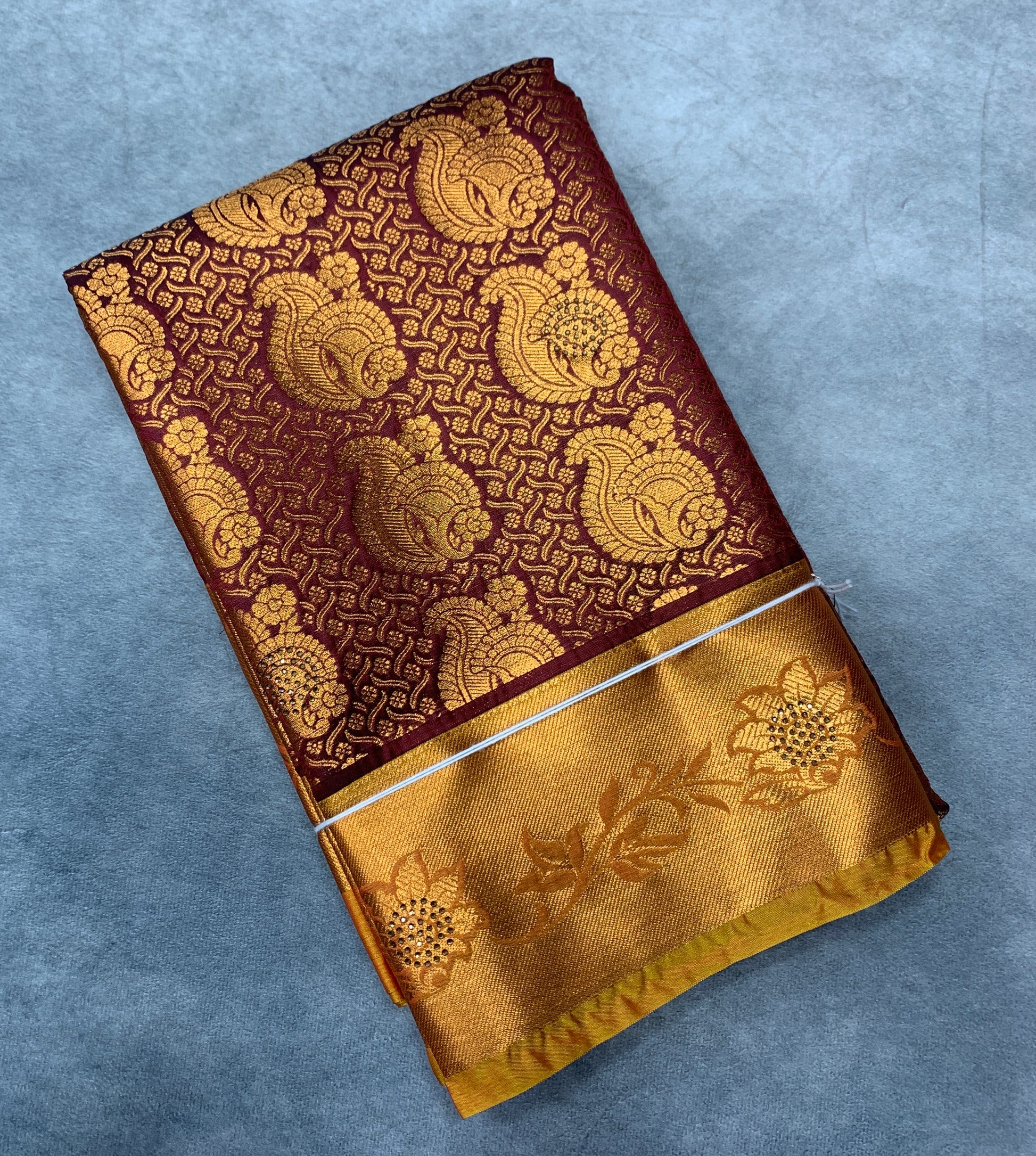 Vegan Silk Saree Brown Colour with Copper and Golden Yellow Border