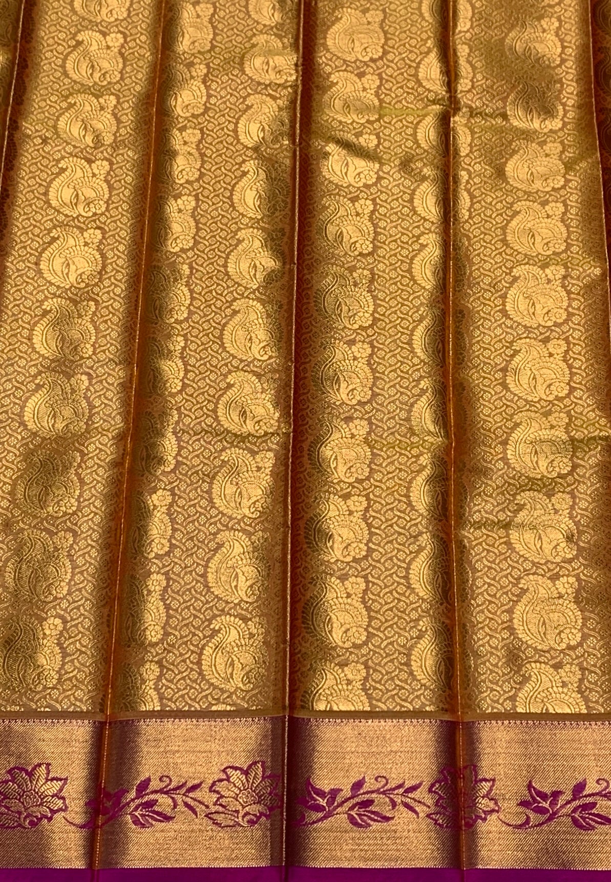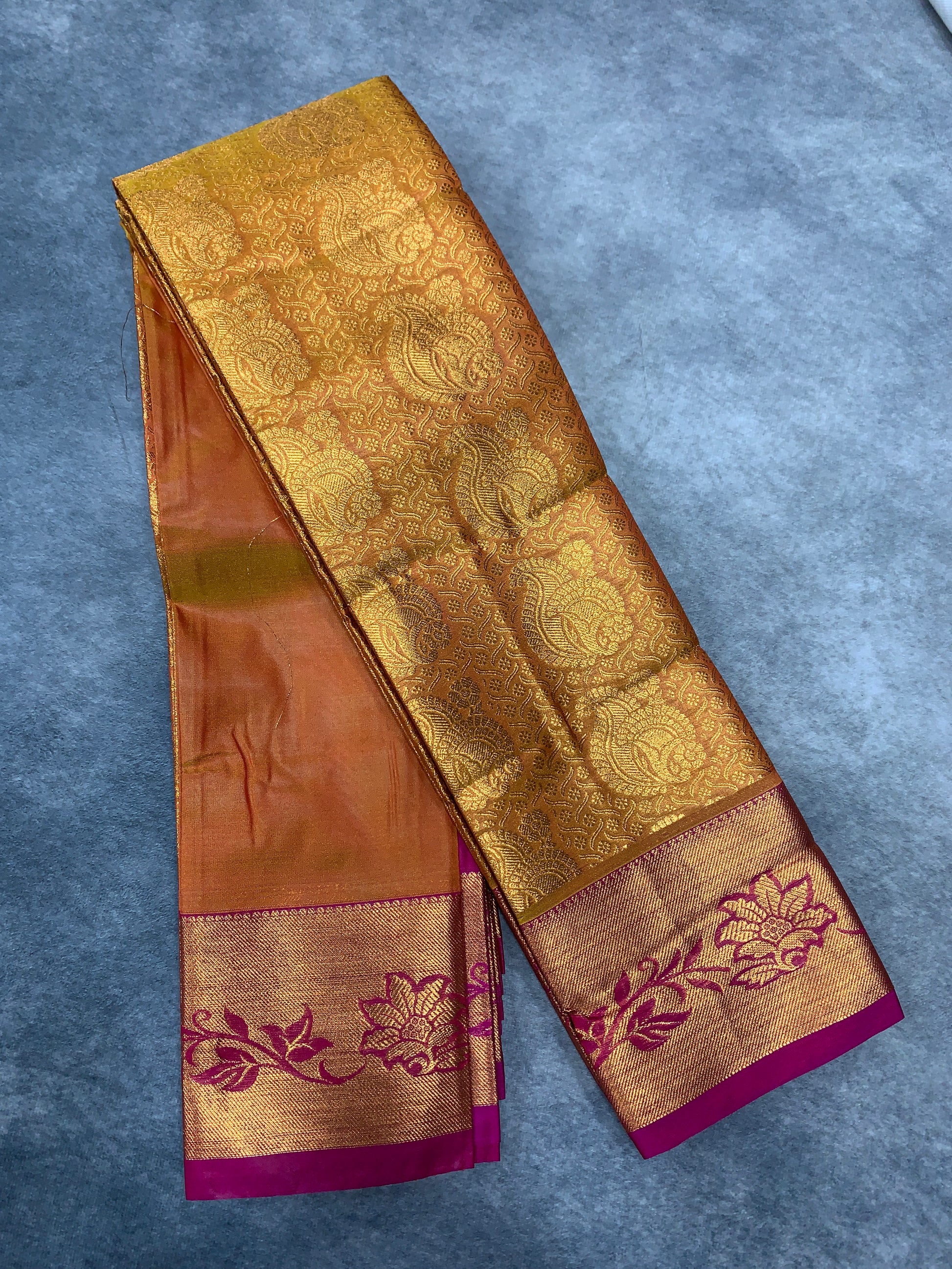 Vegan Silk Saree Golden Yellow Colour with Copper and Pink Border