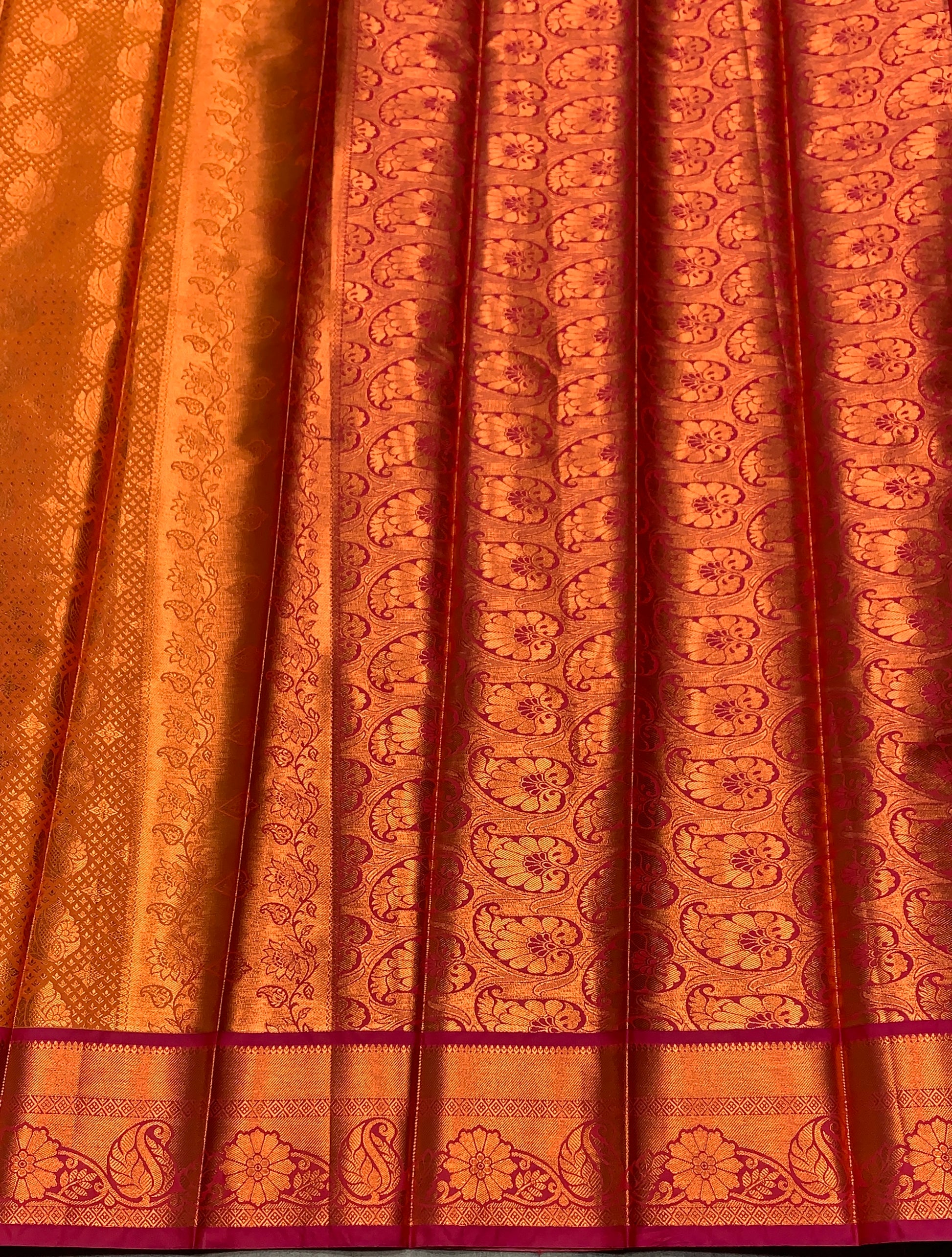 Vegan Silk Saree Golden Yellow Colour with Pink and Copper Border