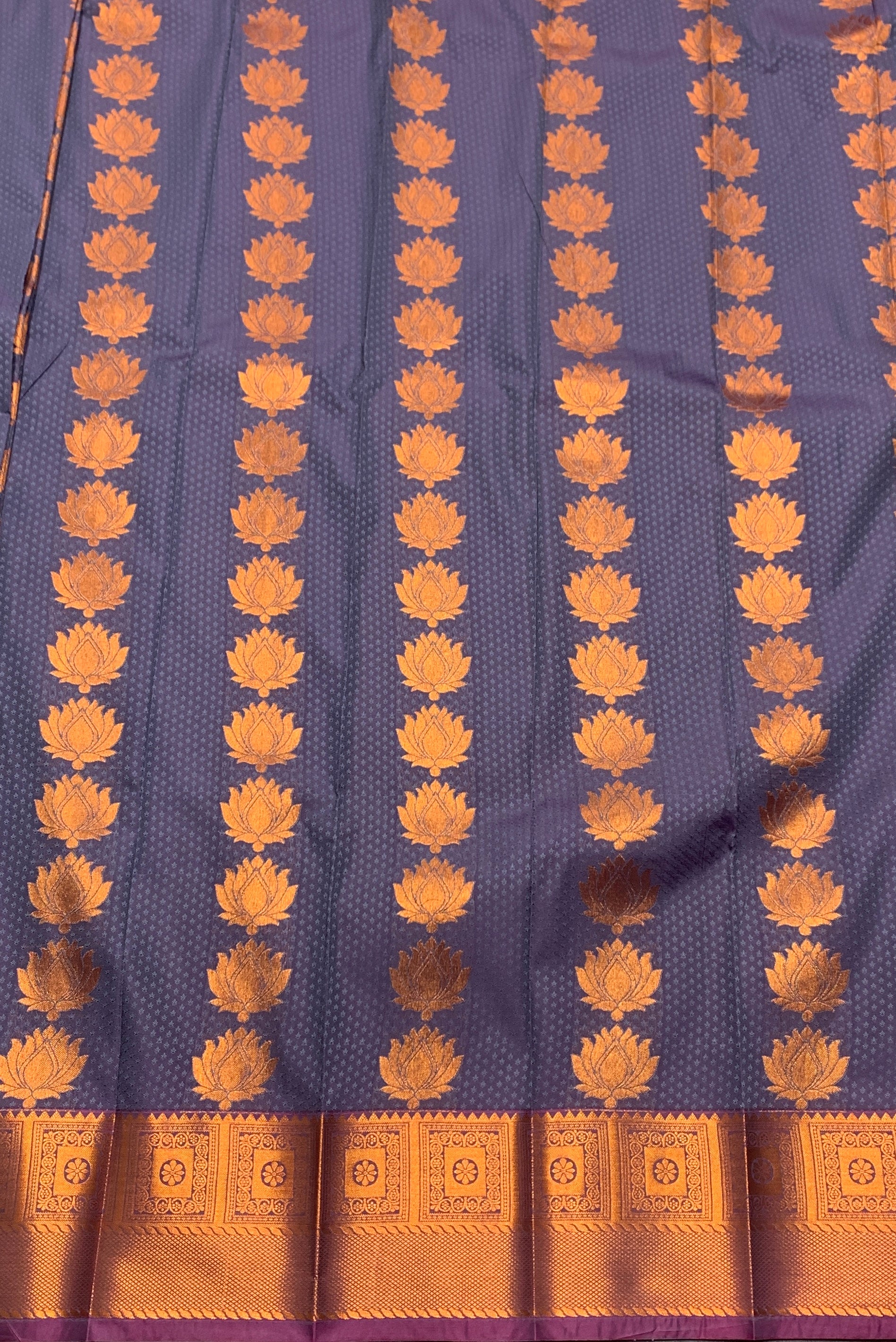 Vegan Silk Saree Gray Colour with Flower design. Copper Border with Flower design.