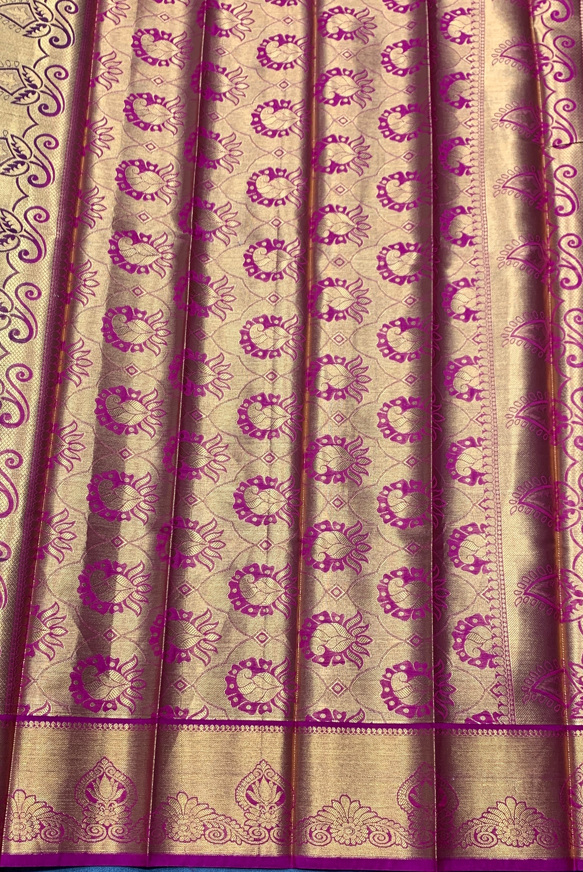 Vegan Silk Saree Green Colour with Pink and Copper Border