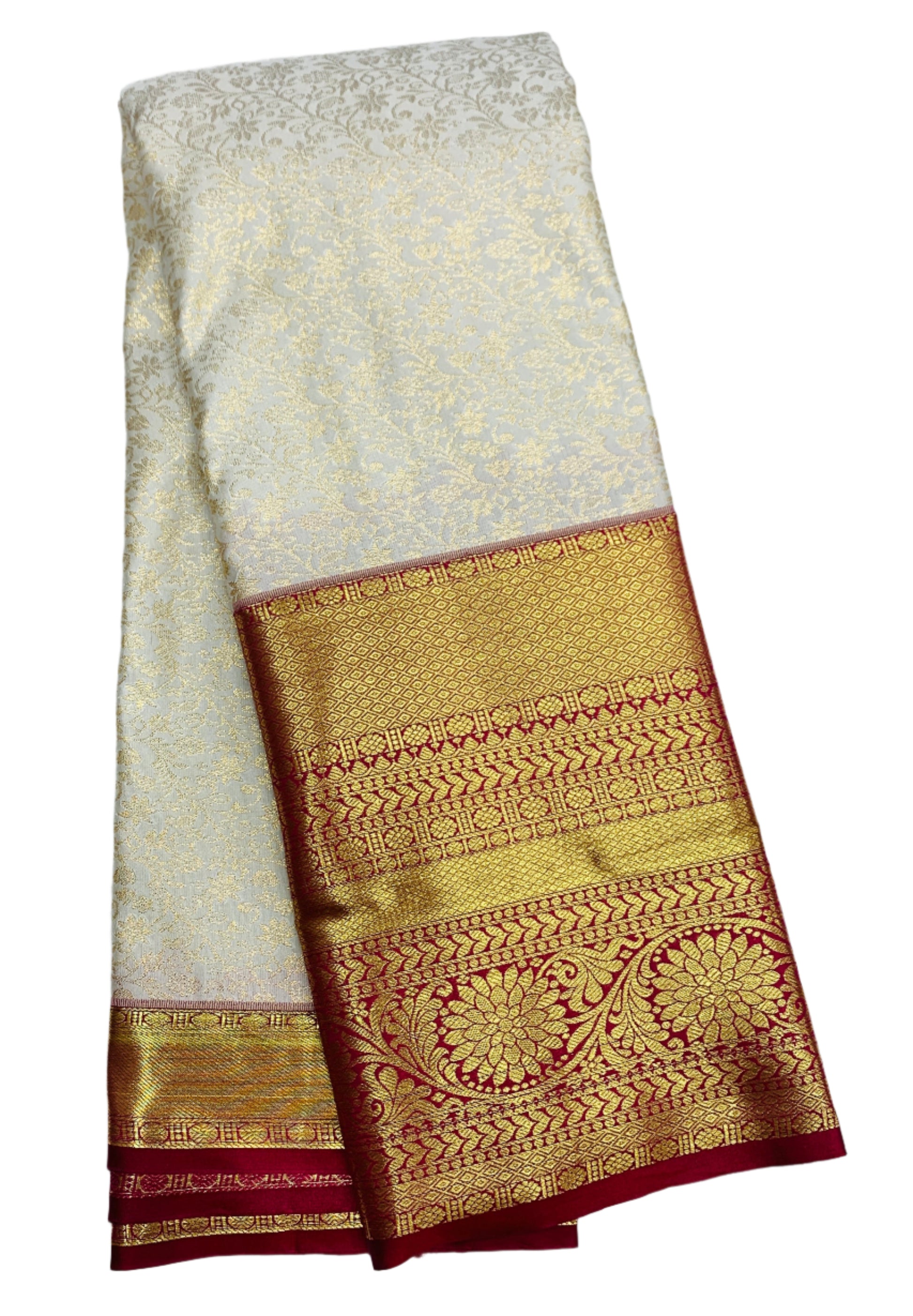 Bridal Vegan Silk Saree Ivory Colour and floral design. Maroon with Floral design. Dry wash only.
