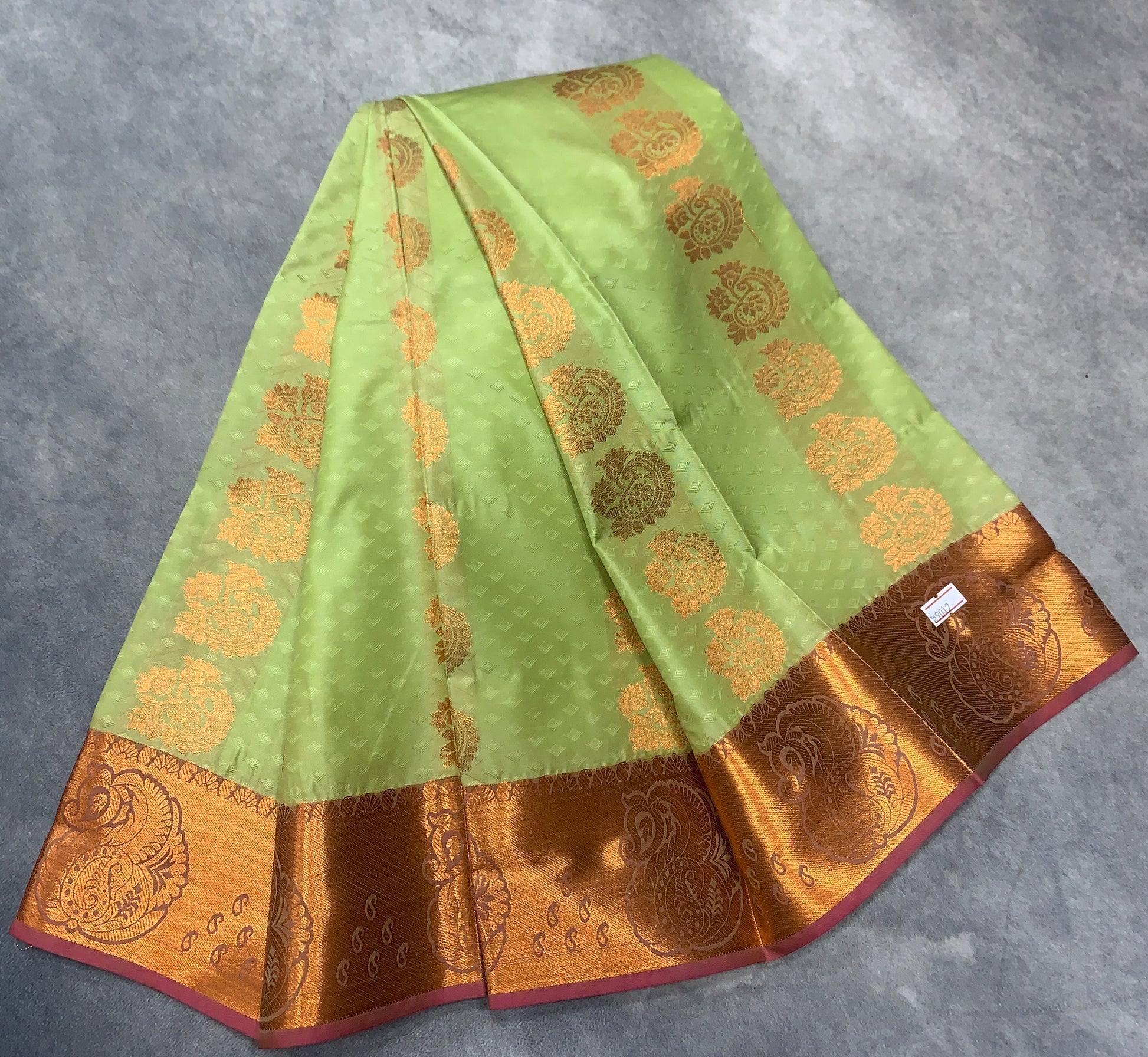 Vegan Silk Saree Light Green Colour Saree with Copper Border