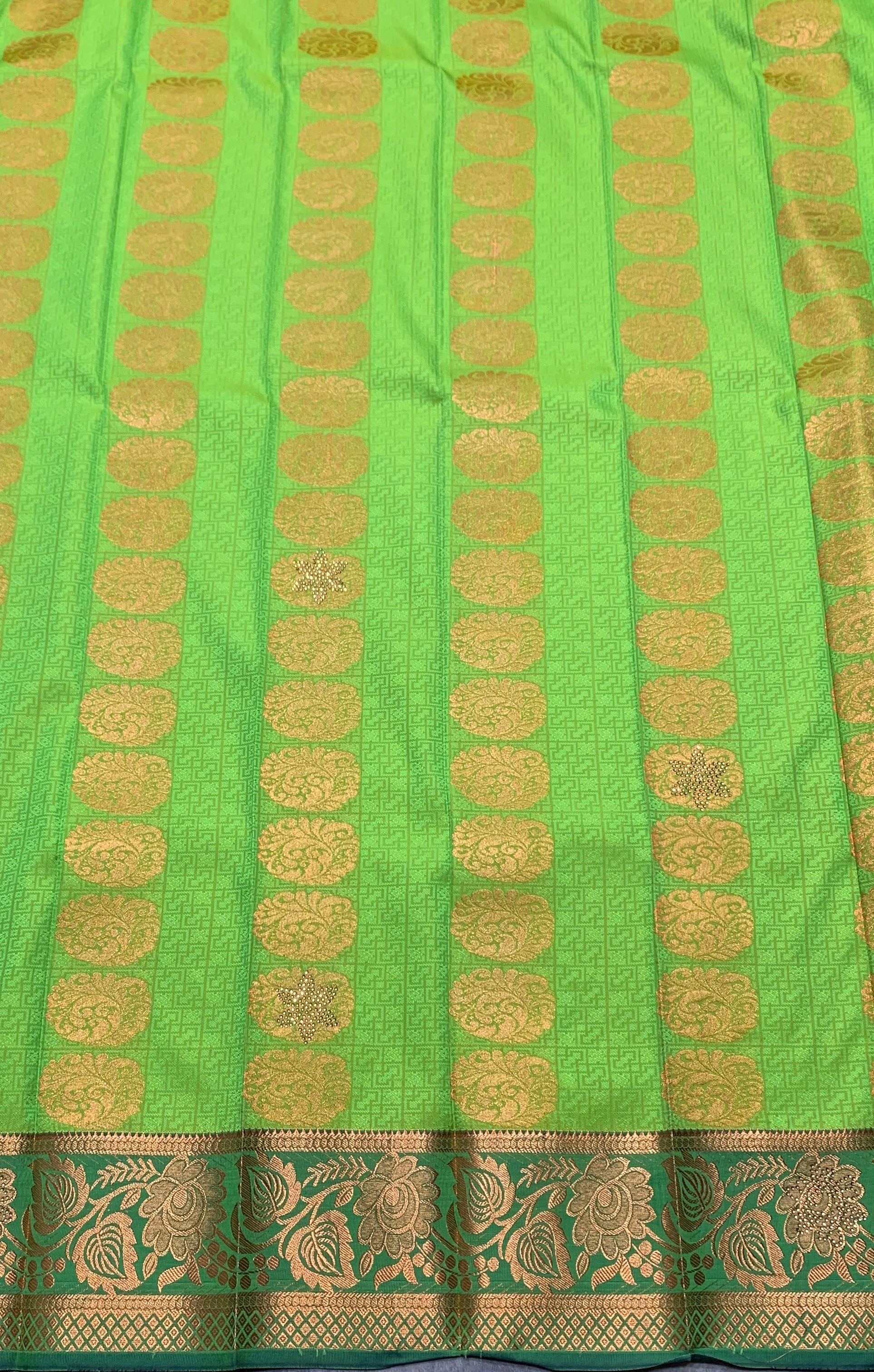 Vegan Silk Saree Light Green Colour with Copper and Green Floral Design Border