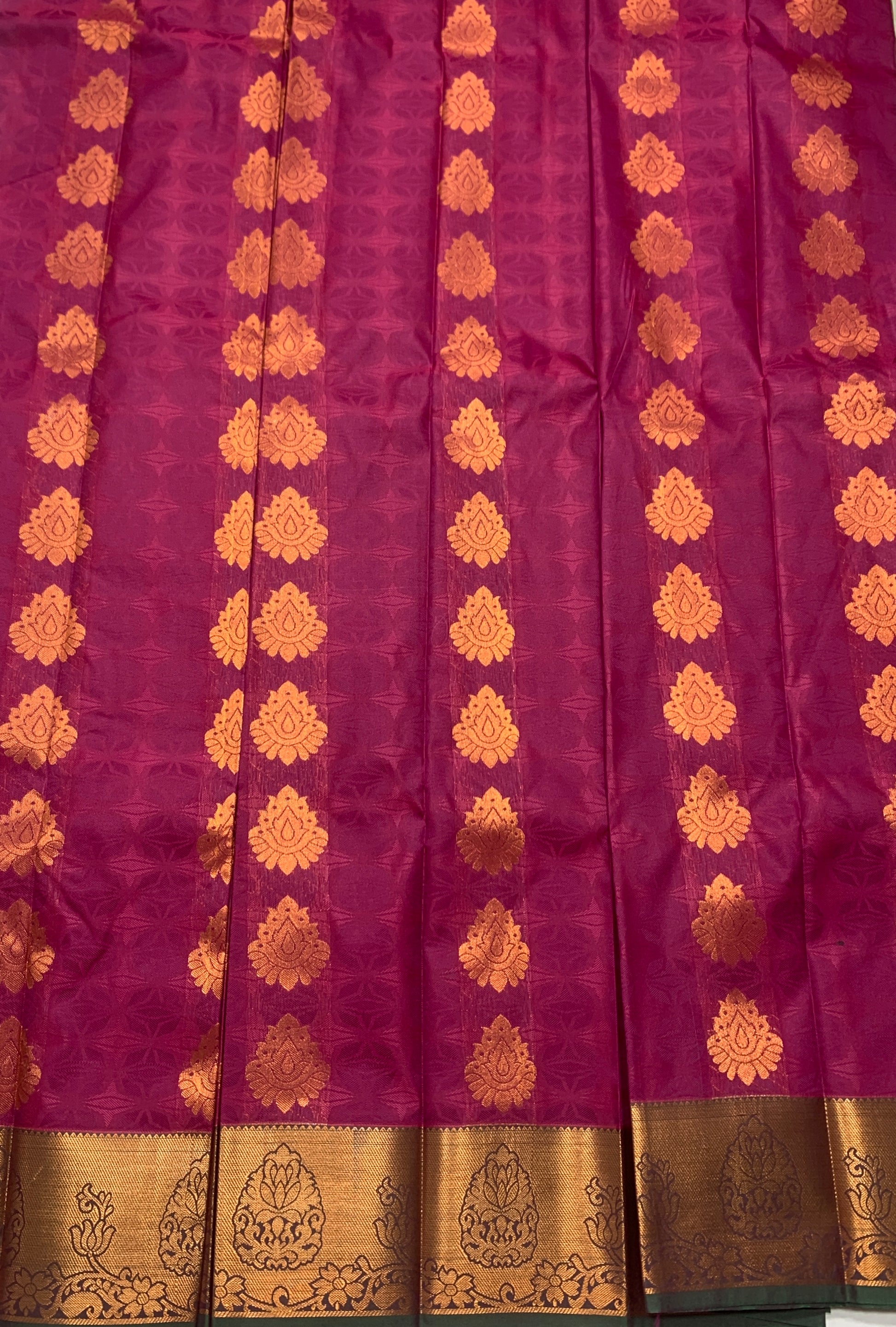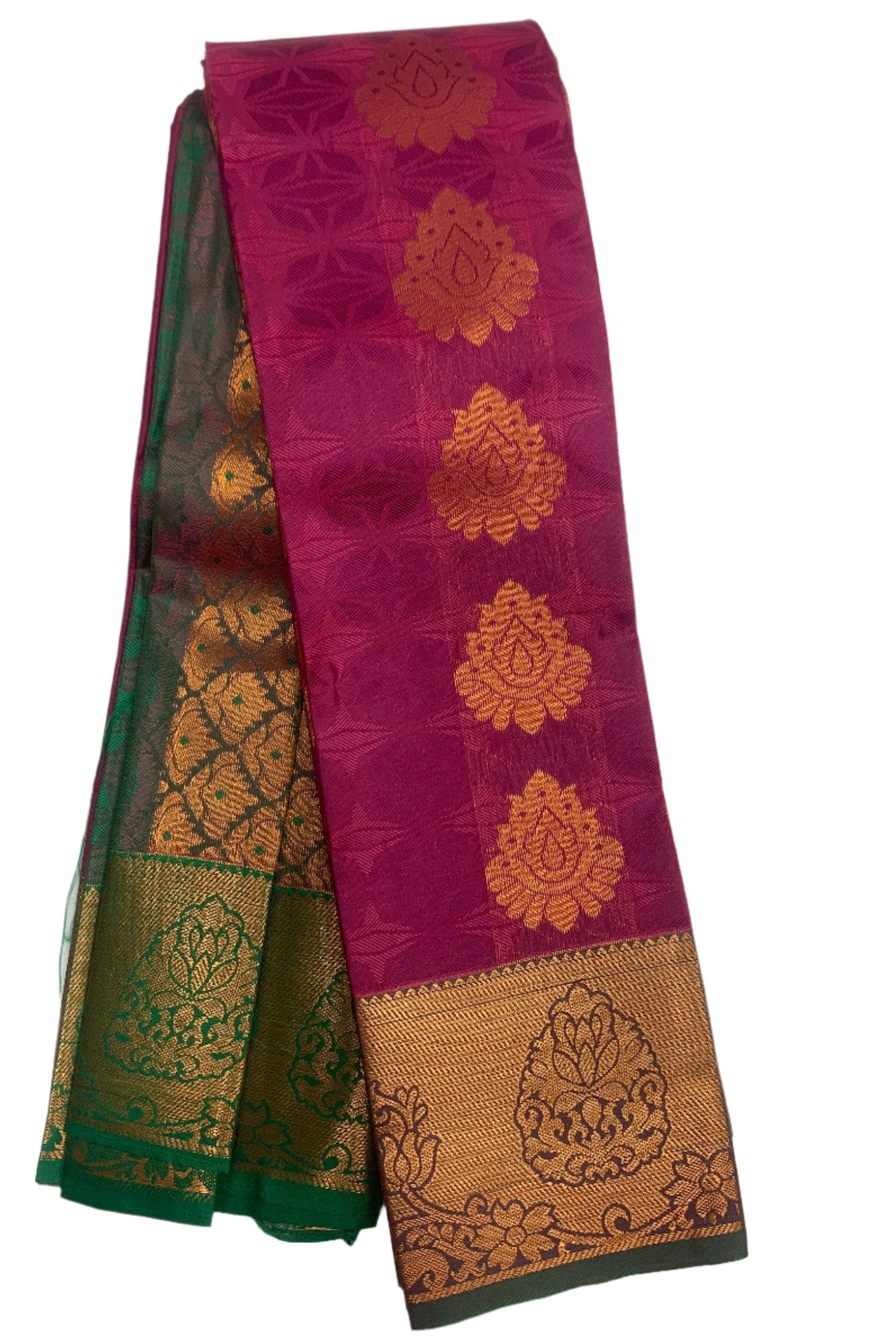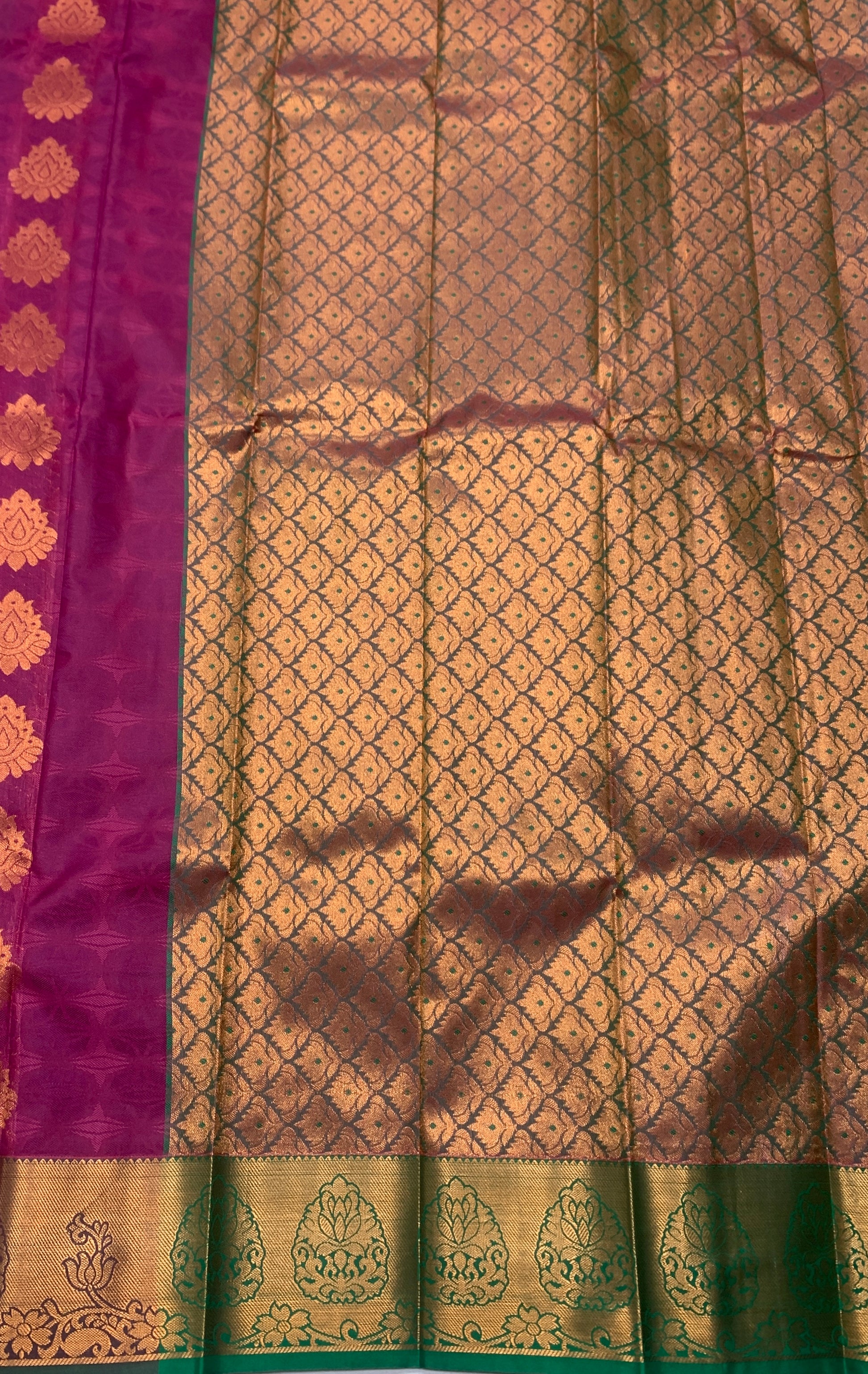 Vegan Silk Saree Magenta shade with Copper and Green Border