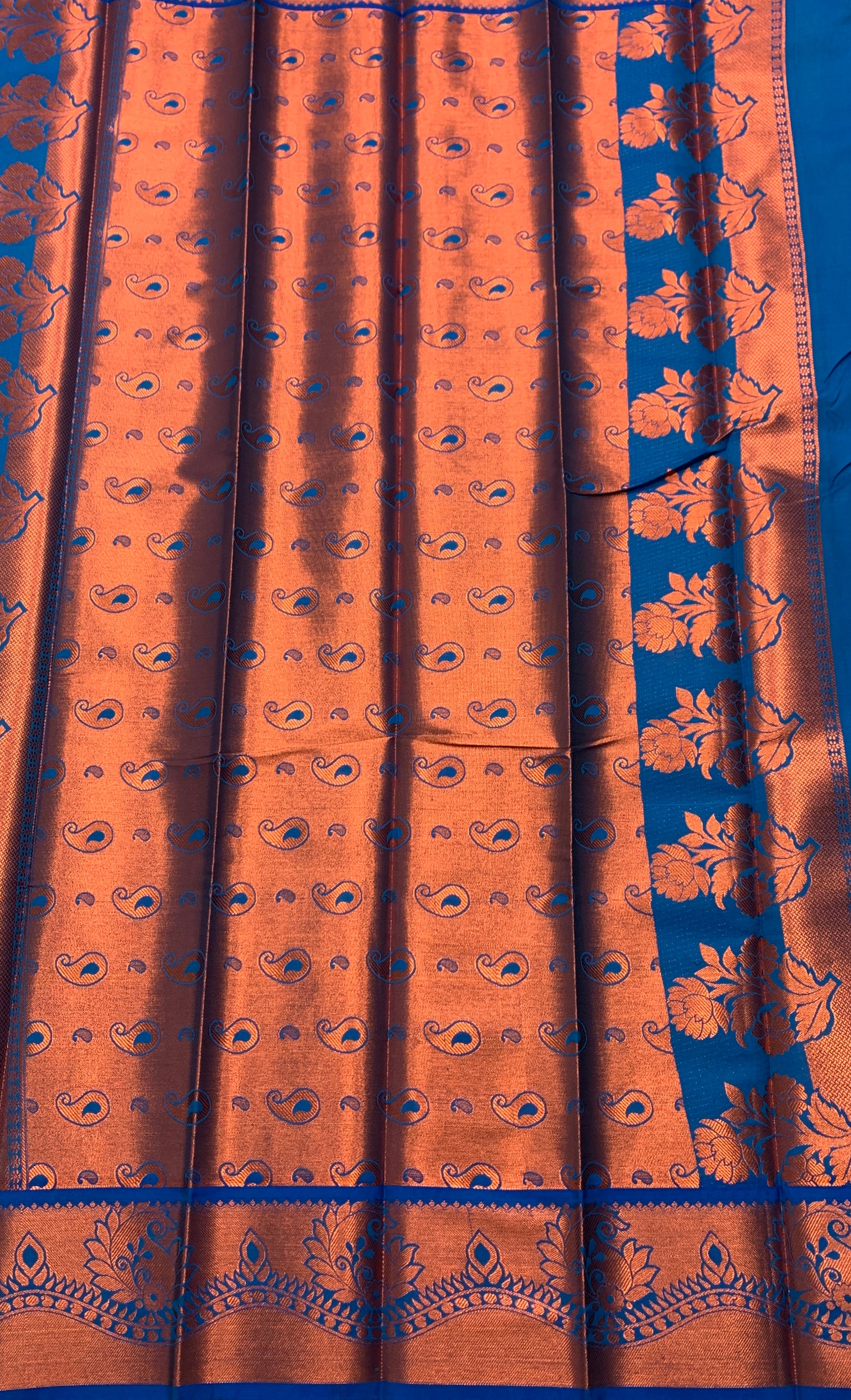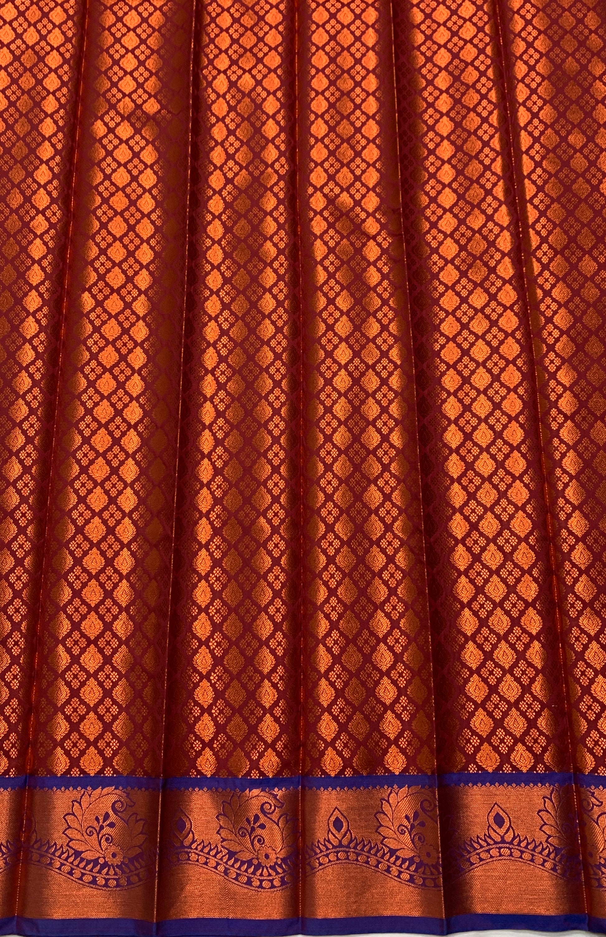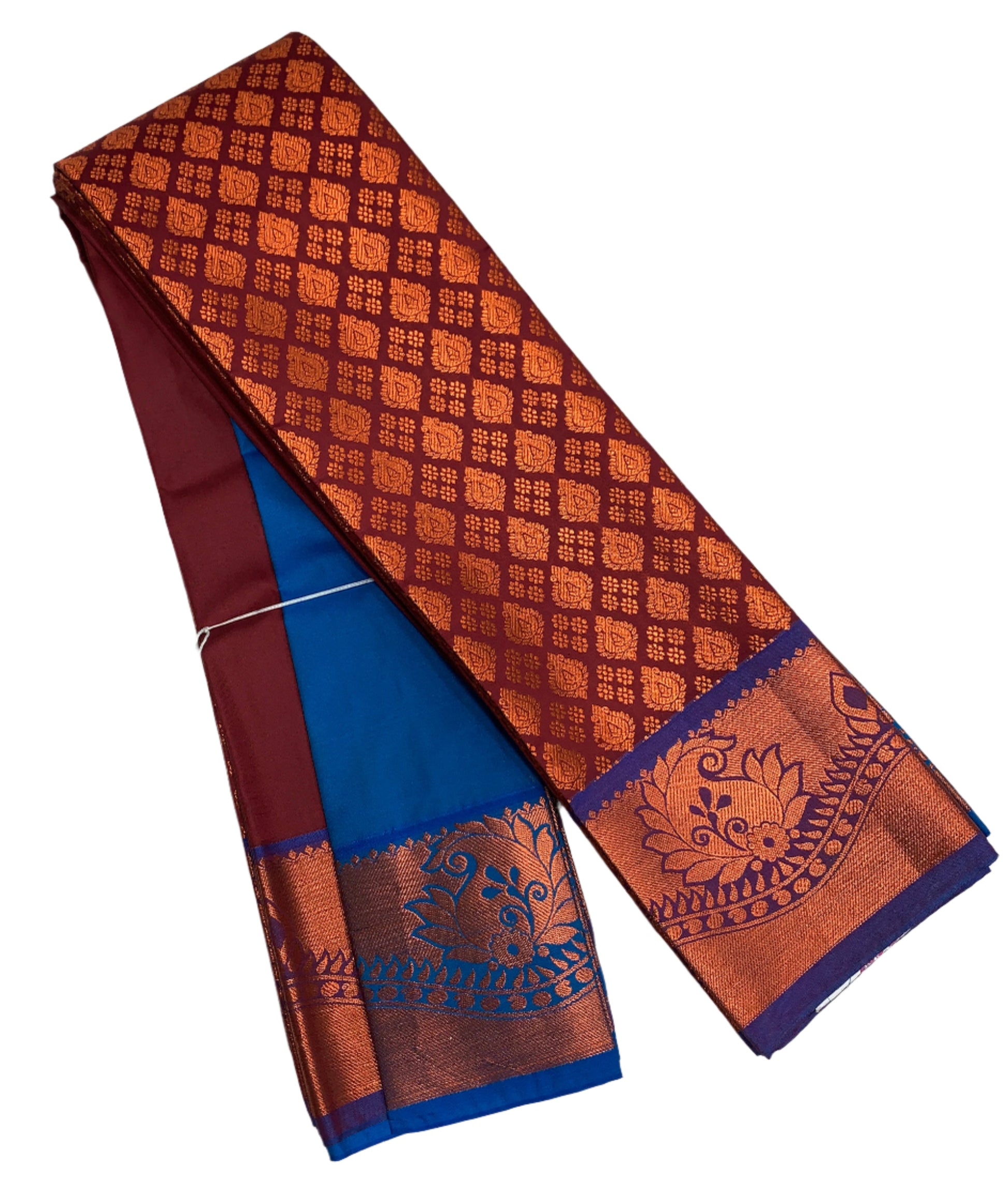 Vegan Silk Saree Maroon Colour with Copper and Blue Border