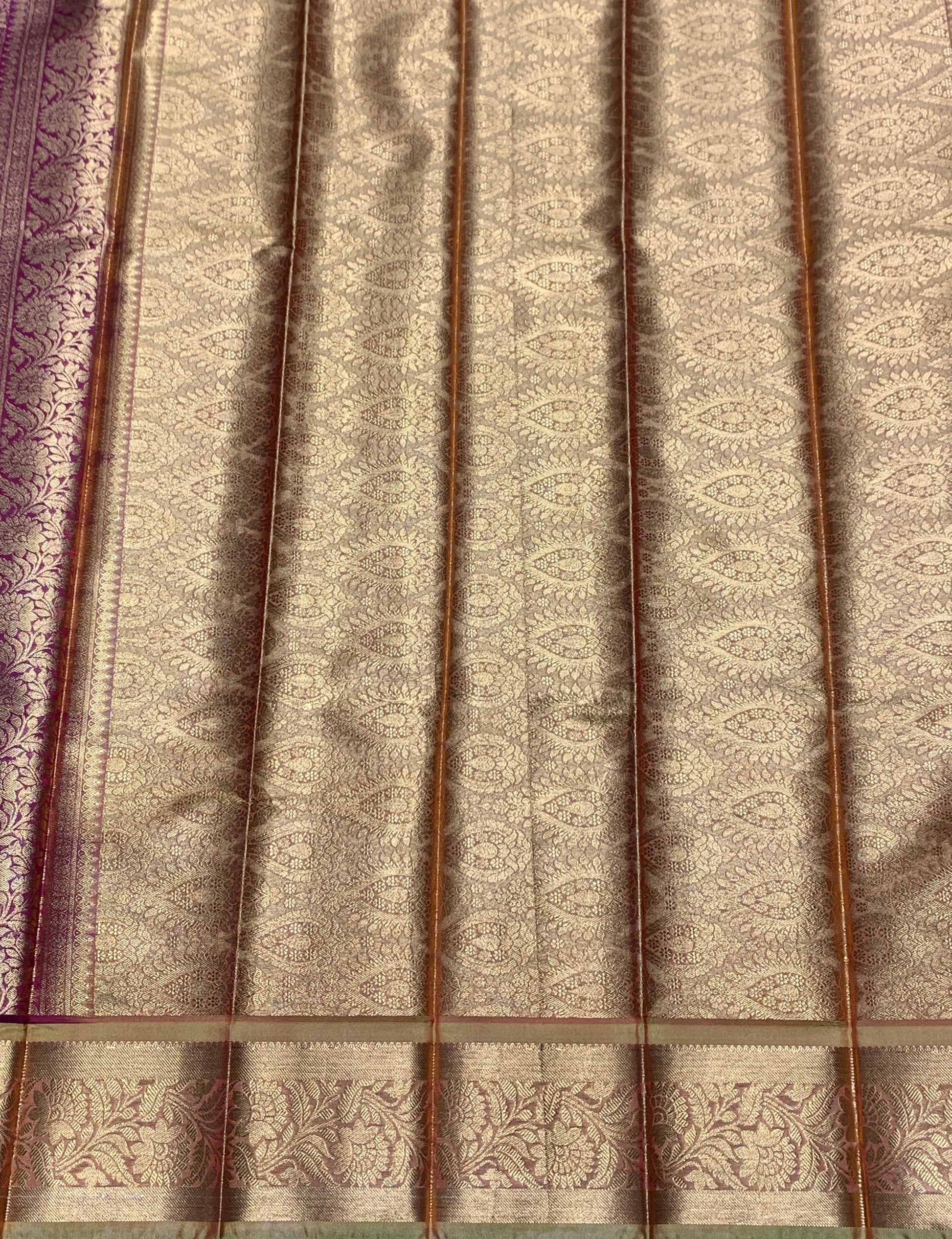 Vegan Silk Saree Maroon Colour with Copper and Golden Border