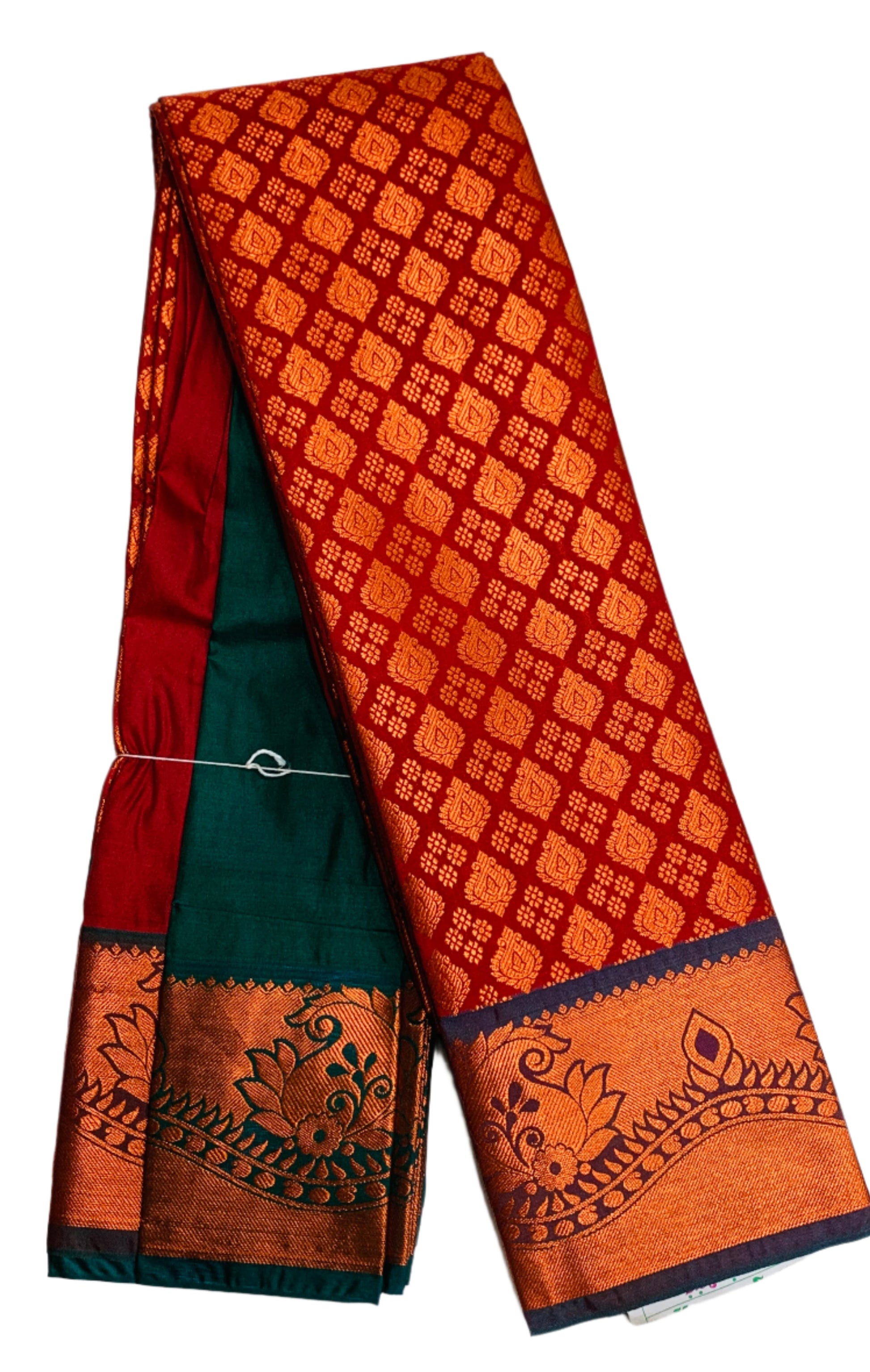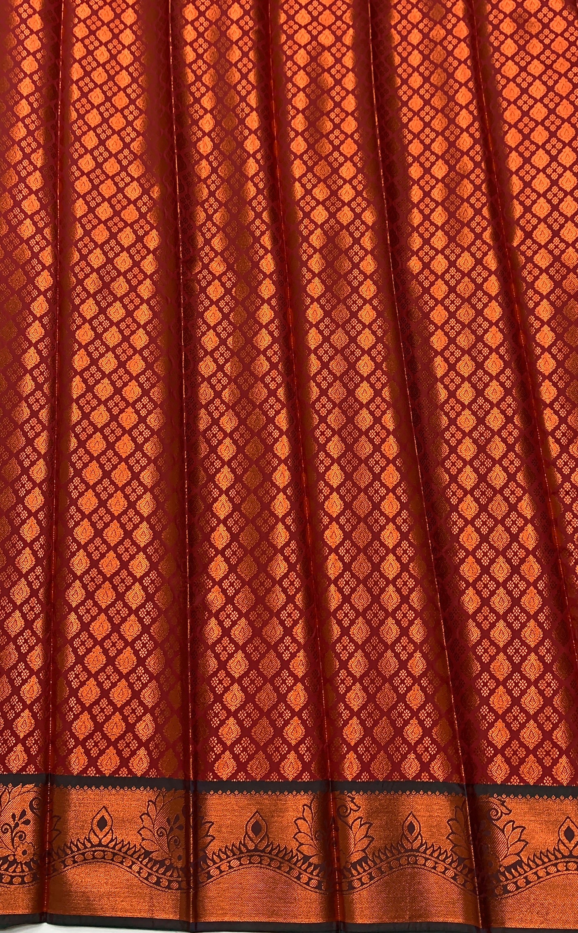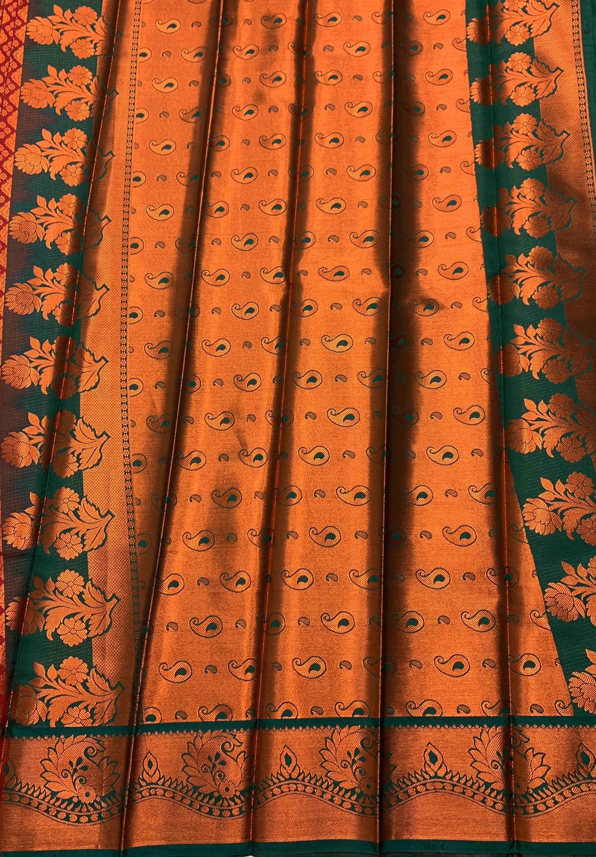 Vegan Silk Saree Maroon Colour with Copper and Green Border