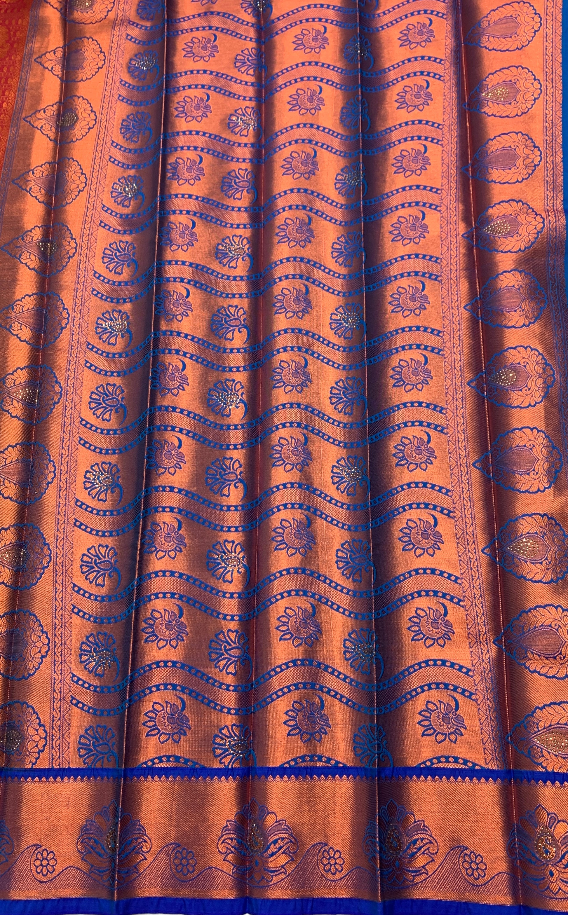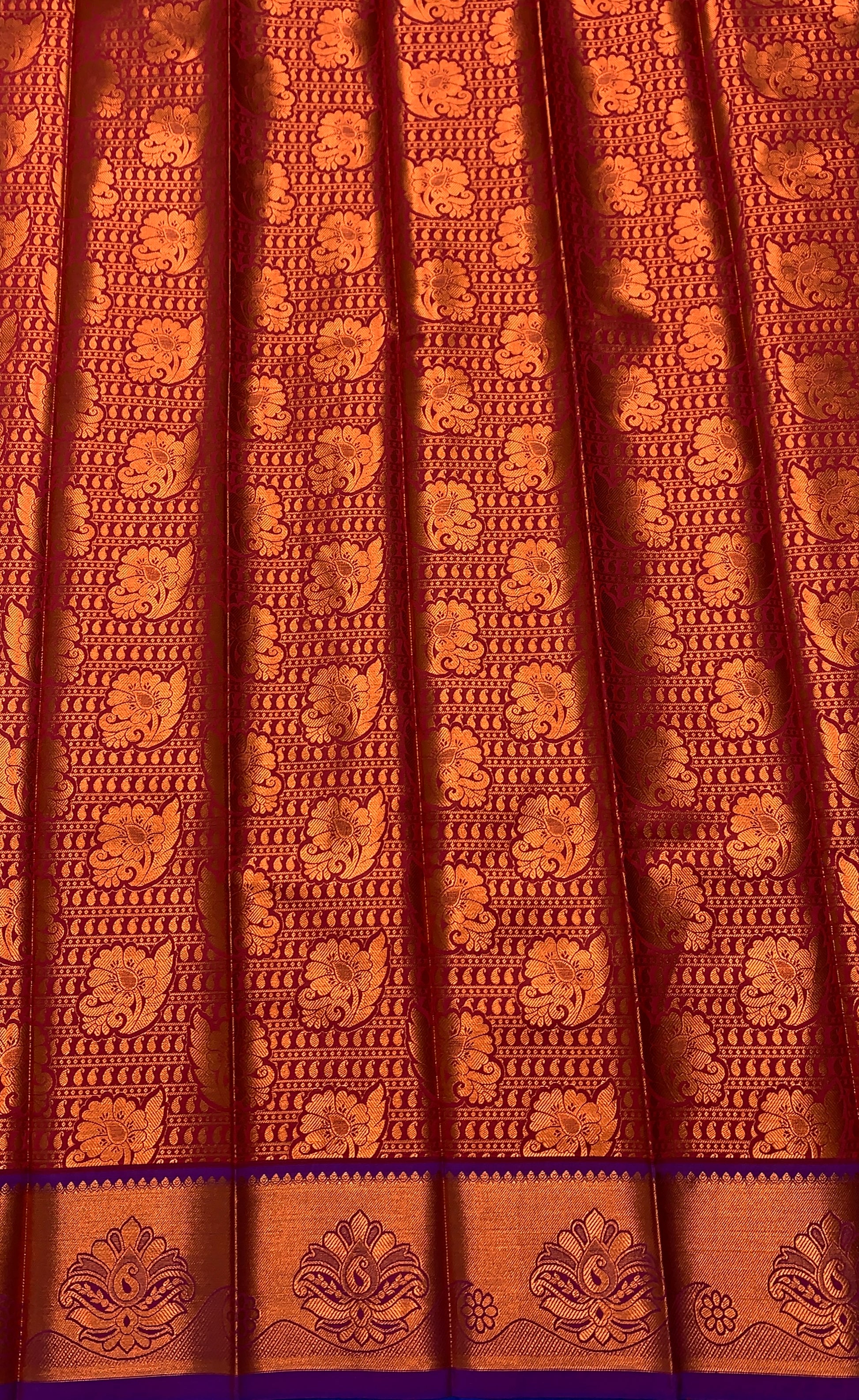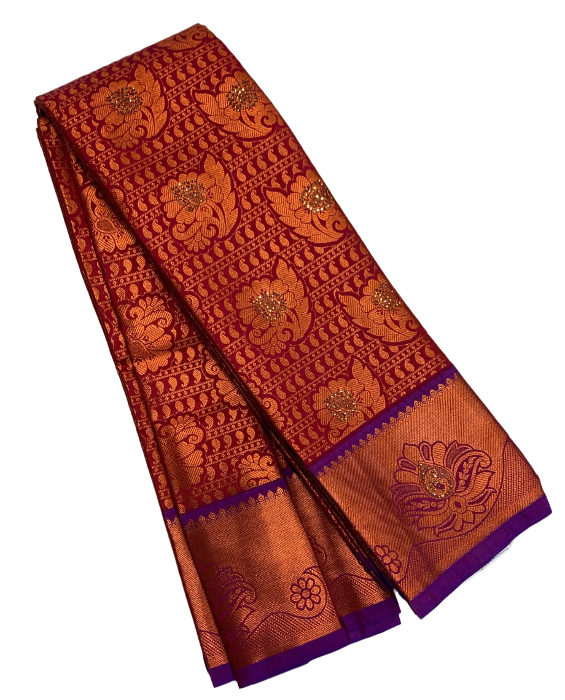Vegan Silk Saree Maroon Colour with Copper and Purple Border