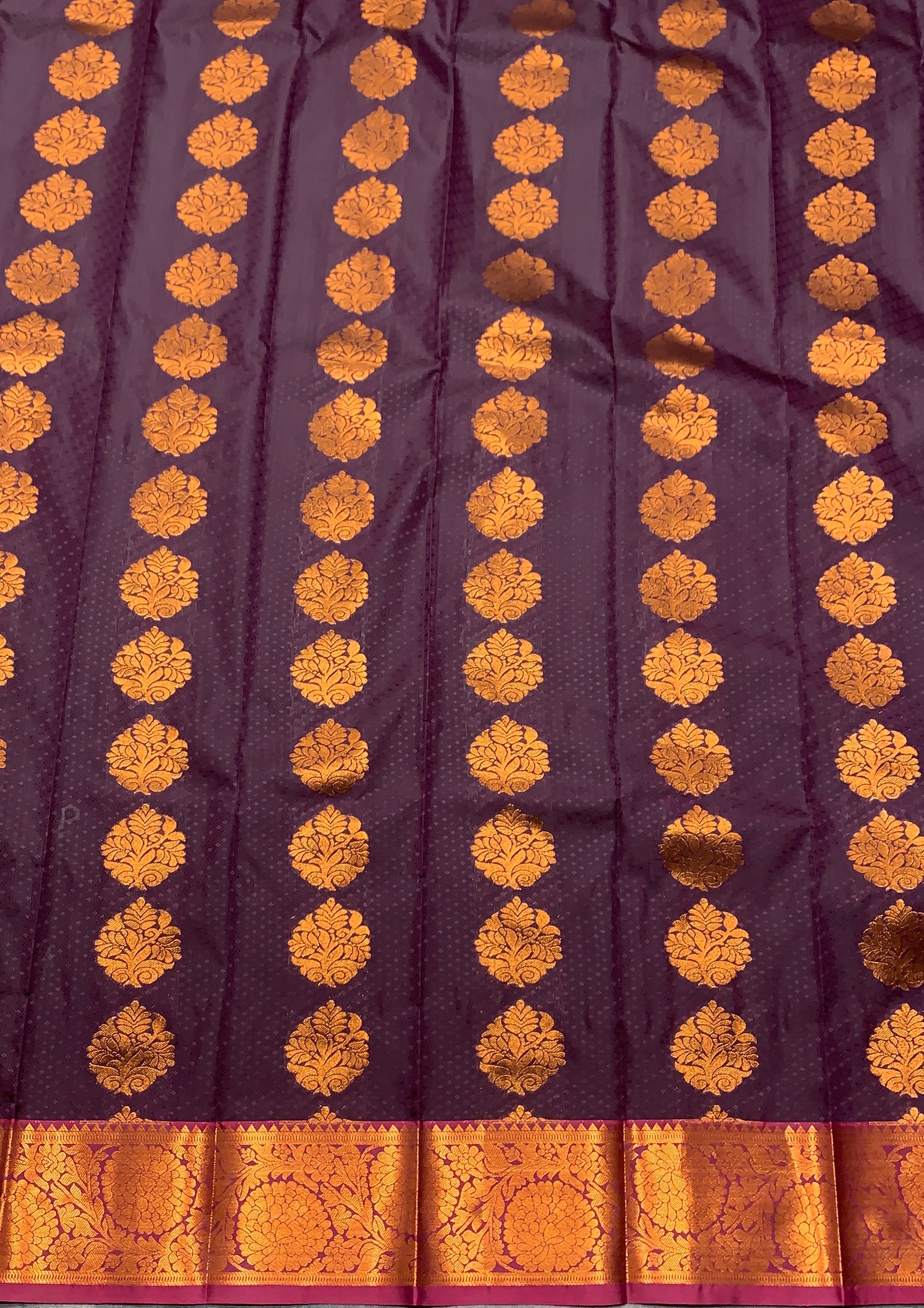 Vegan Silk Saree Navapalam Colour with flower design. Copper Border with Flower design.