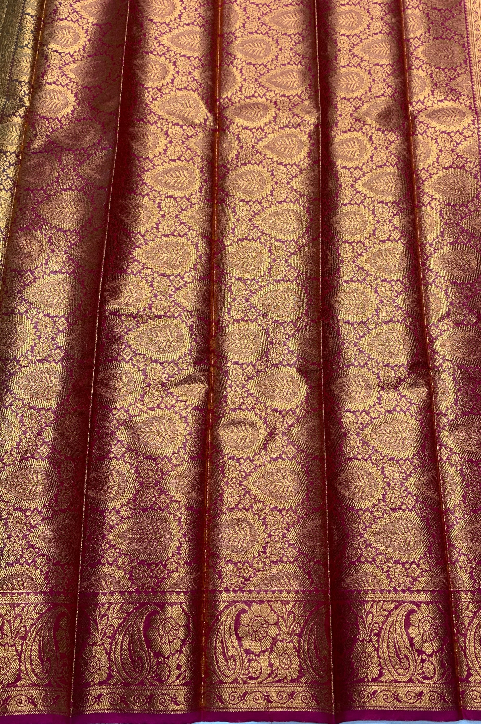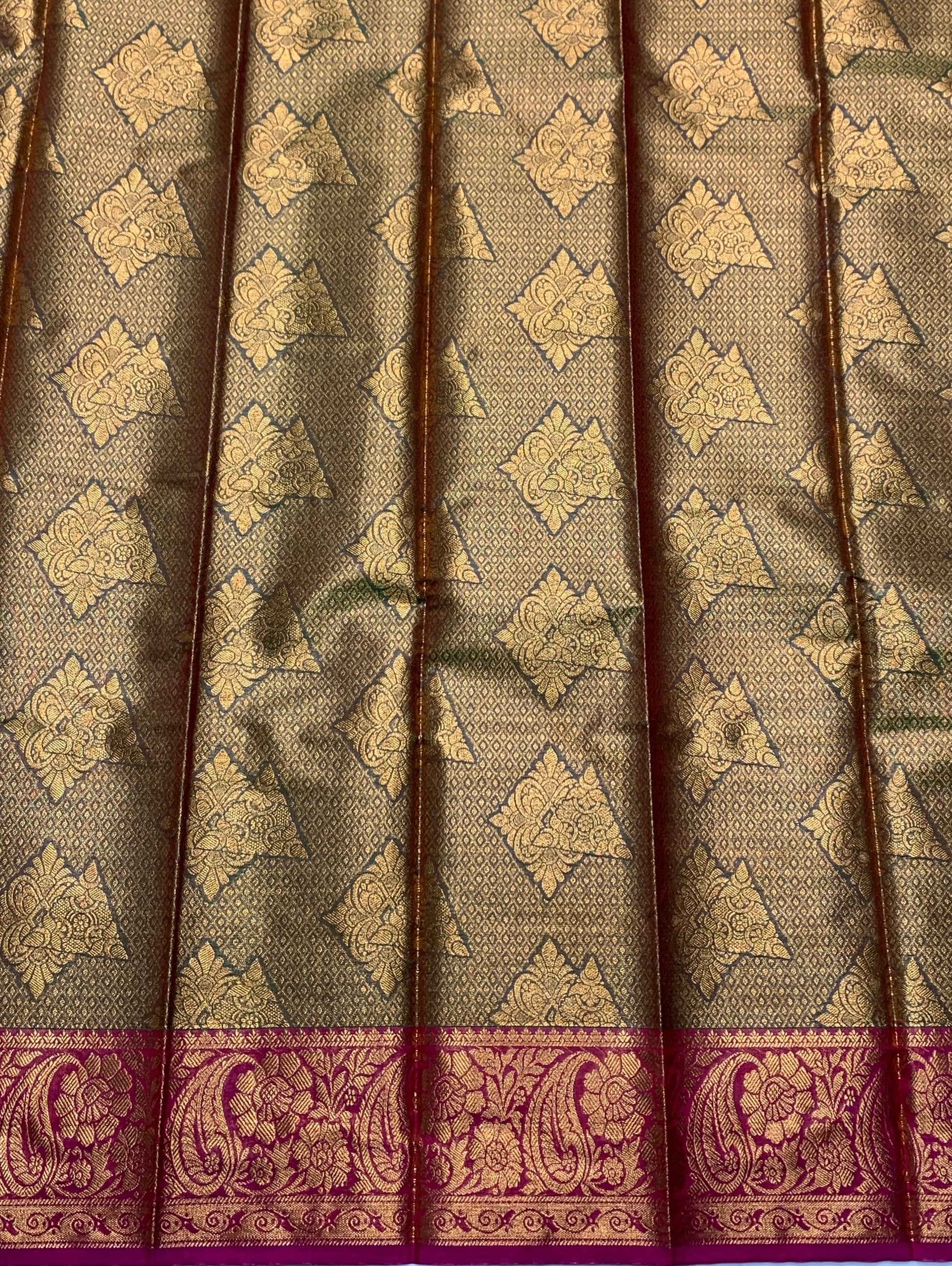 Vegan Silk Saree Olive Green Colour with Copper and Pink Border