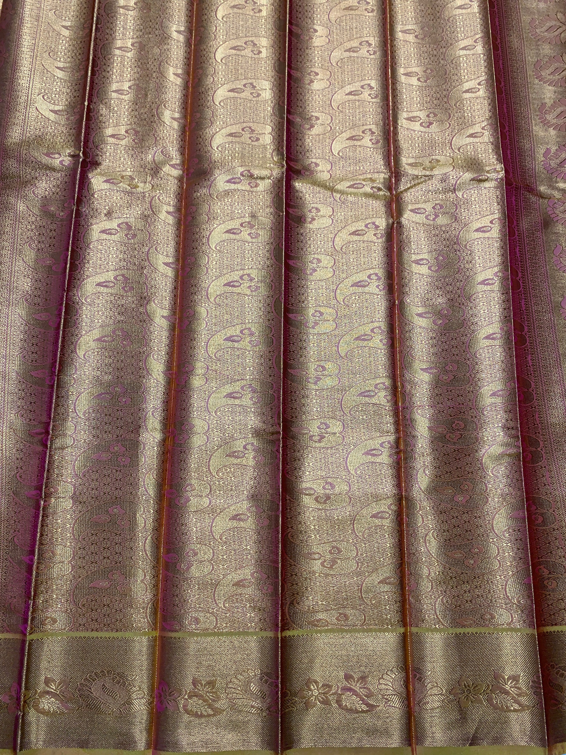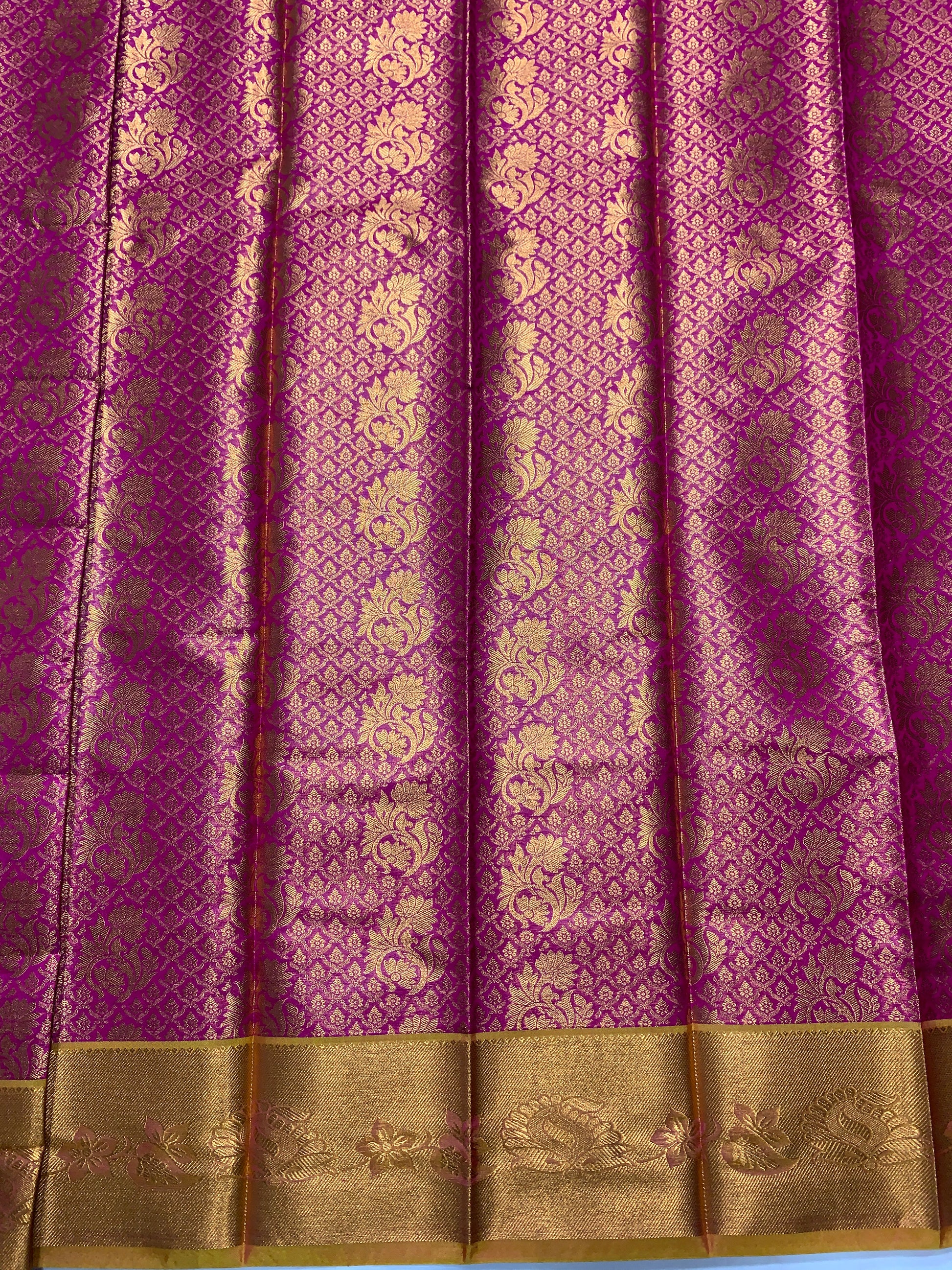 Vegan Silk Saree Pink Colour with Copper and Golden Yellow Border