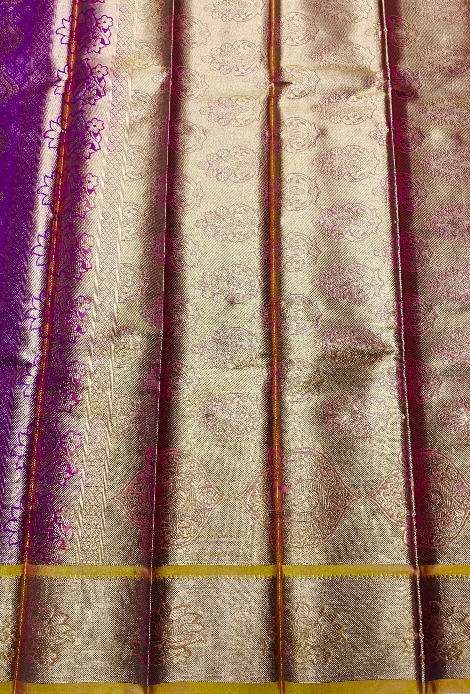 Vegan Silk Saree Pink Colour with Copper and Golden Yellow Border