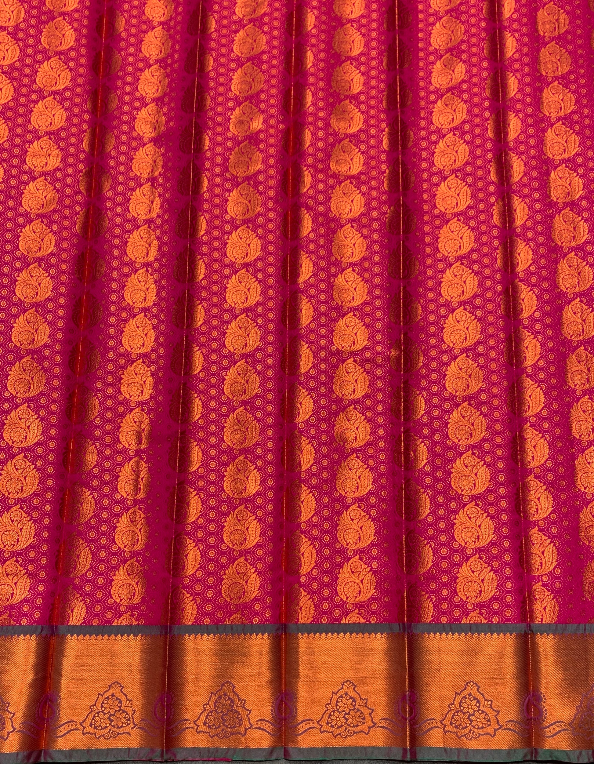 Vegan Silk Saree Pink Colour with Green and Copper Border