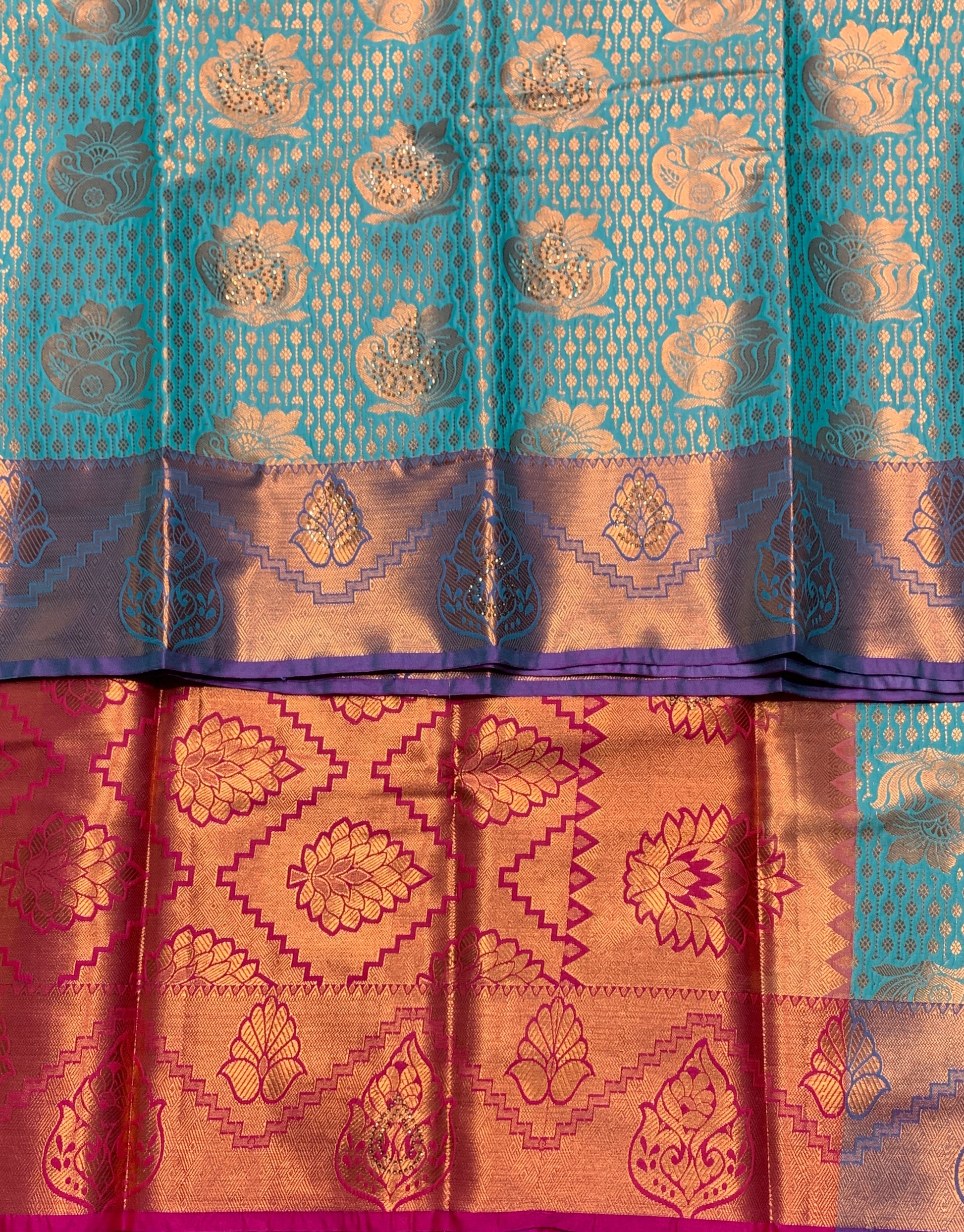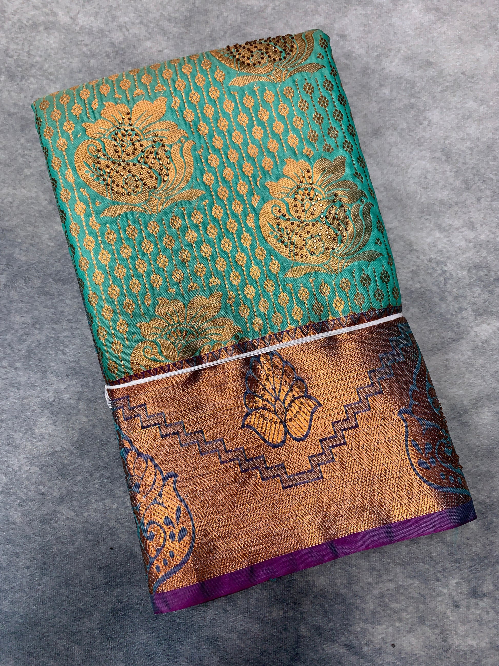 Vegan Silk Saree Light Green Colour with Copper and Magenta.