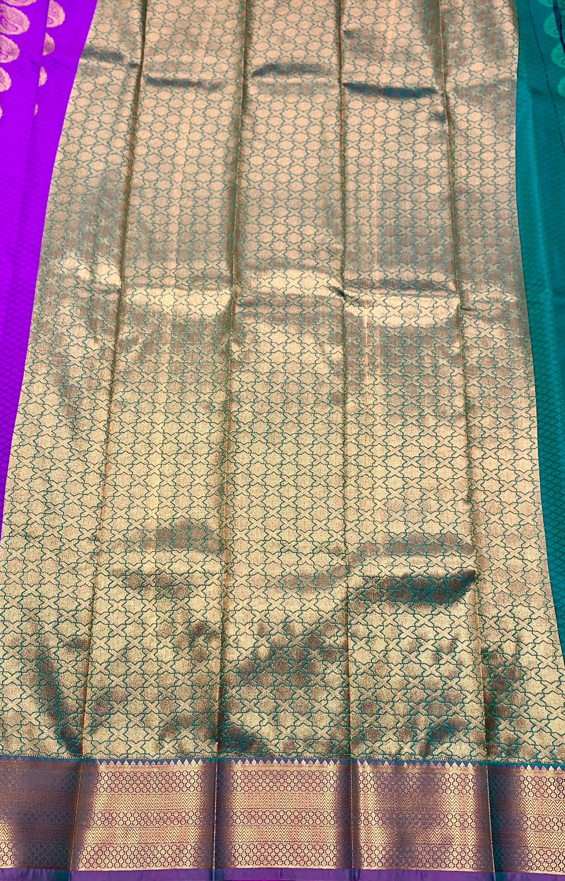 Vegan Silk Saree Vadamali Colour with flower design. Copper Border with Flower design.