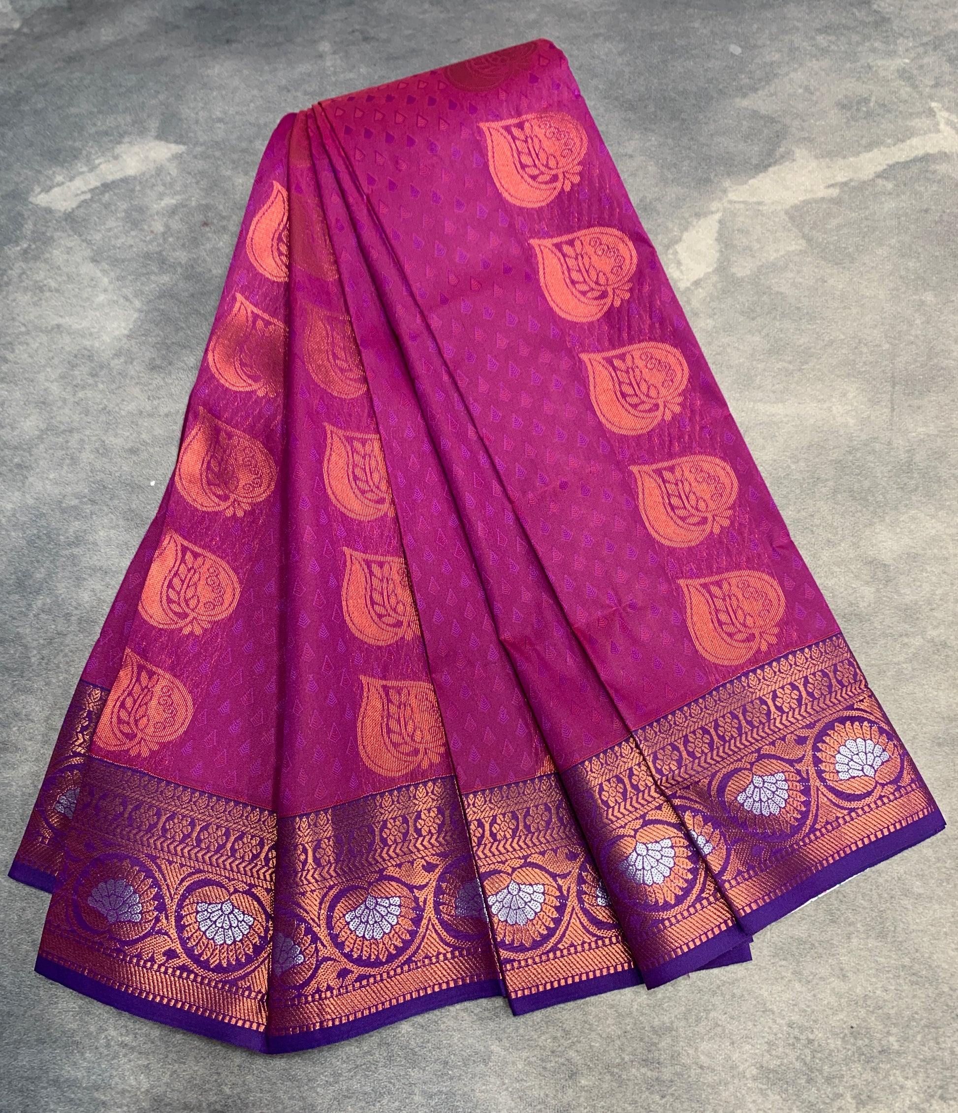 Vegan Silk Saree Vadamali Colour with Flower design. Copper and Purple Border with Flower design.