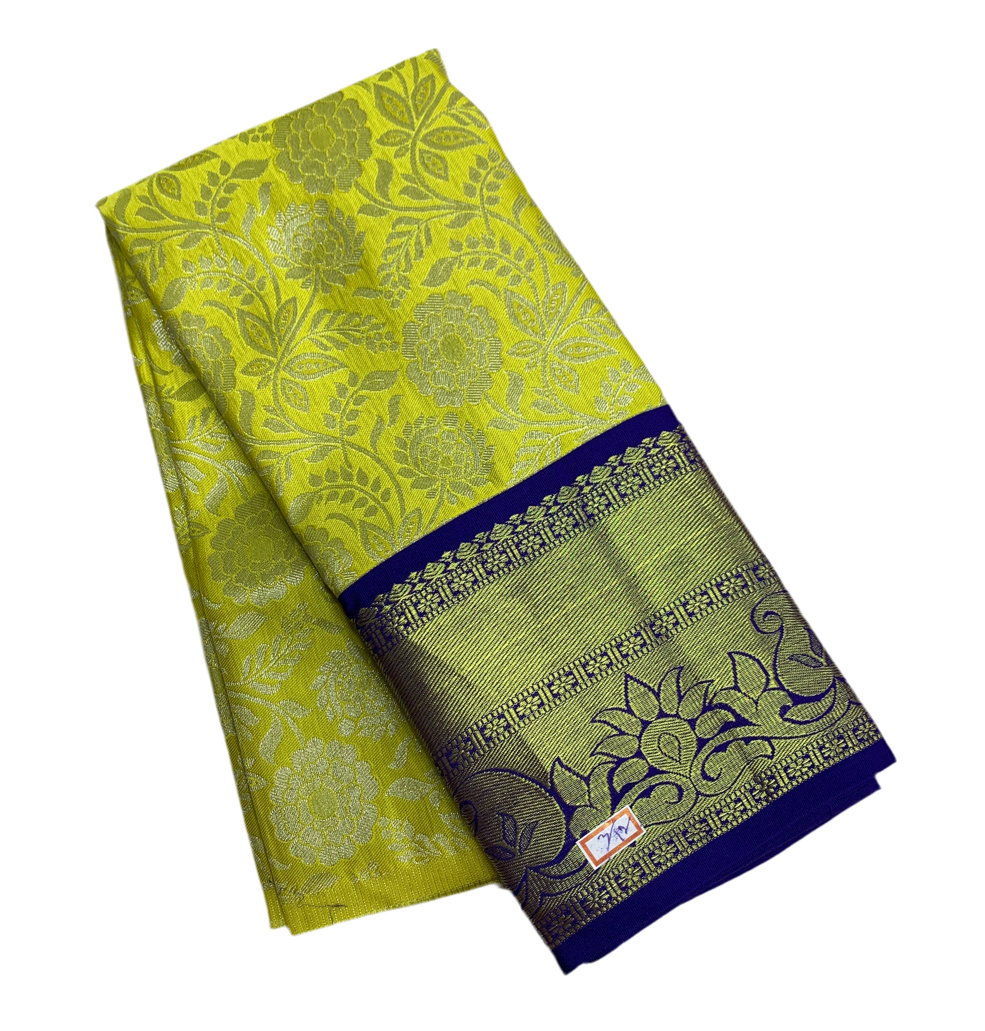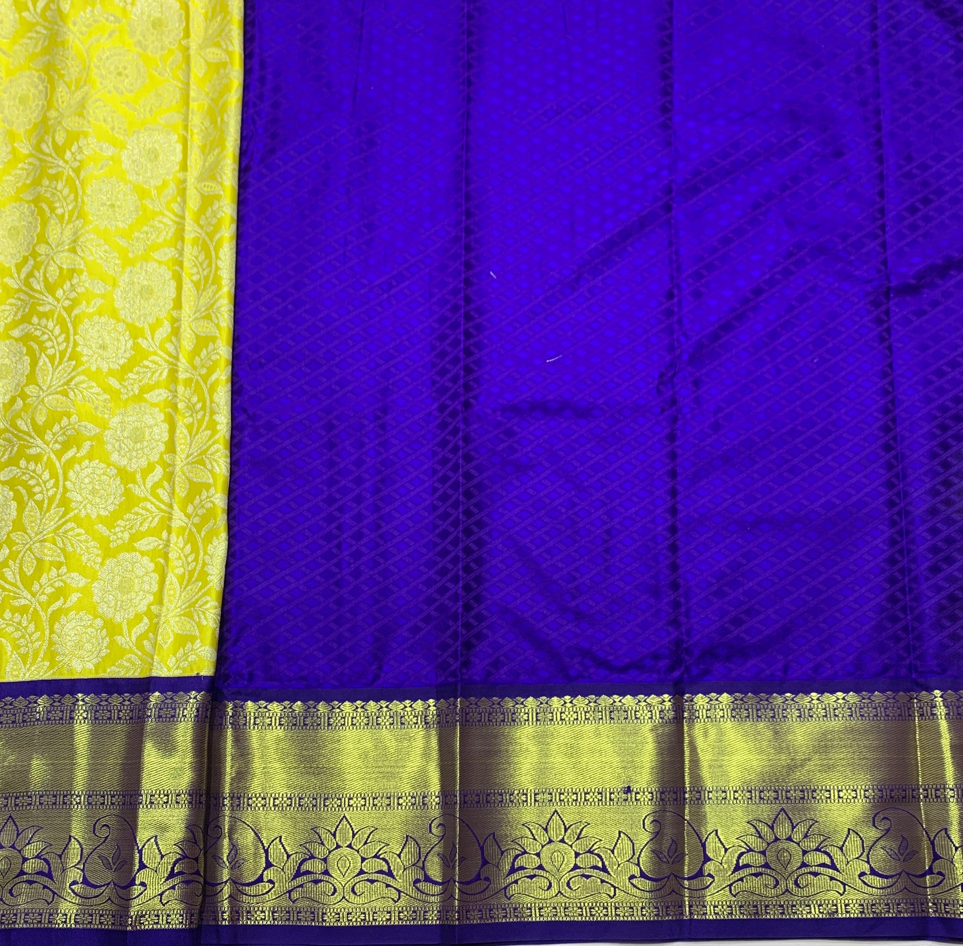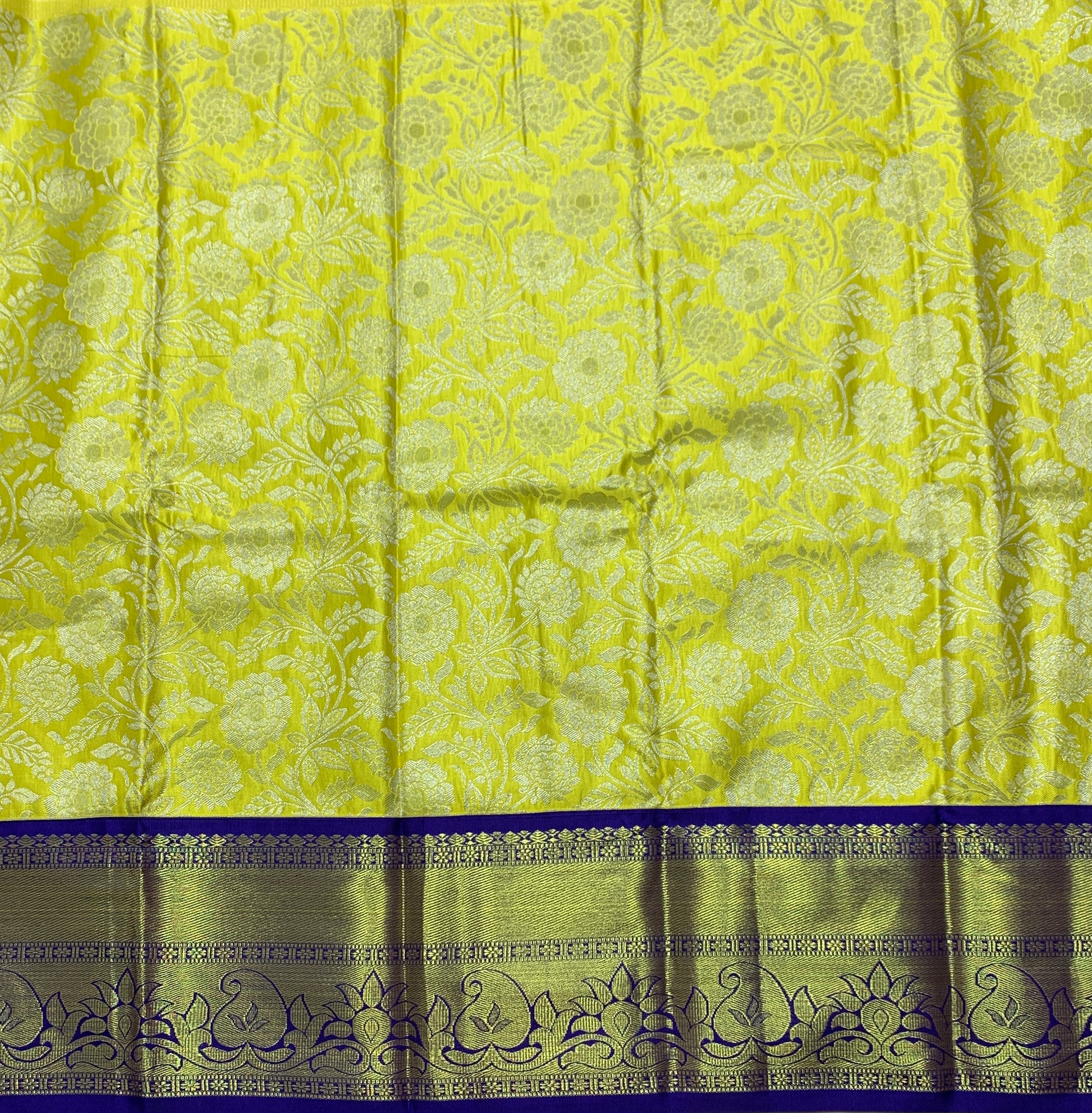 Yellow Shade with Contrast Border Vegan Silk unstitched Pattu Pavadai material for kids age 2 to 5